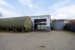 Aan de linker voorzijde van het bedrijf en aansluitend aan het ketelhuis zijn 2 kappen gereserveerd als loods/opslagruimte. Deze ruimte heeft een vloeroppervlakte van 7,8 x 12 m. Een sectionaal deur (merk Crawford) deur van 3 x 2,90 m biedt toegang tot het buitenerf.