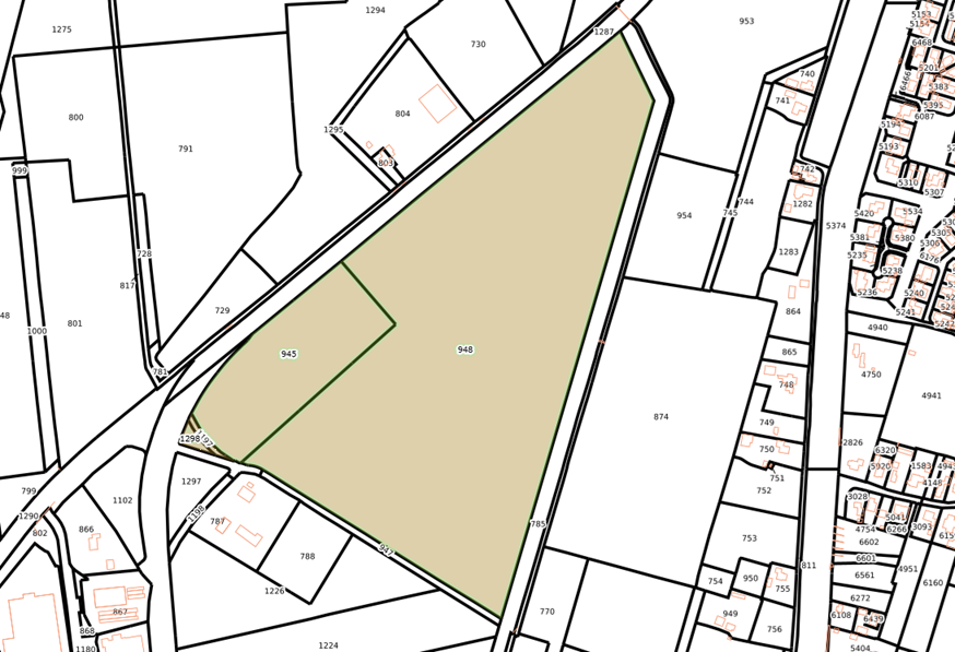Het gaat hier (vermoedelijk) om de sloot tussen de te verkopen perceelsnummers 945 en 948 met perceelsnummer 1287 (eigendom gemeente Dantumadiel).