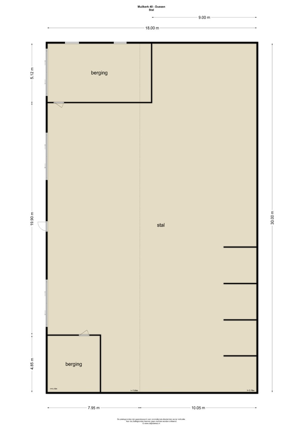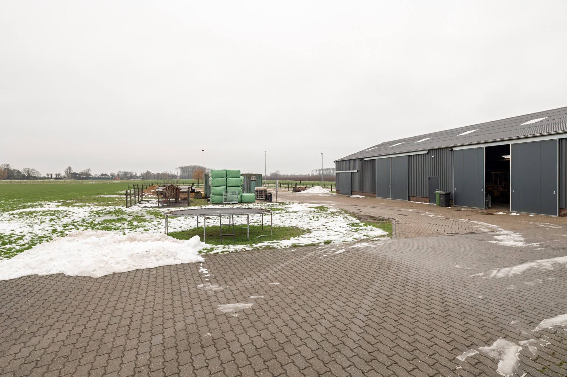 Op het perceel bevindt zich een loods met een afmeting van 30,00m x 18,00m, welke nu wordt gebruikt voor opslag/stalling van materiaal en het stallen van paarden. In de loods is elektra en water aanwezig. De stalenspanten hebben een vrij overspanning, de gevels van de loods zijn bekleed met gevelbeplating evenals het dak. De vloer is deels beton en deels beton klinkers.