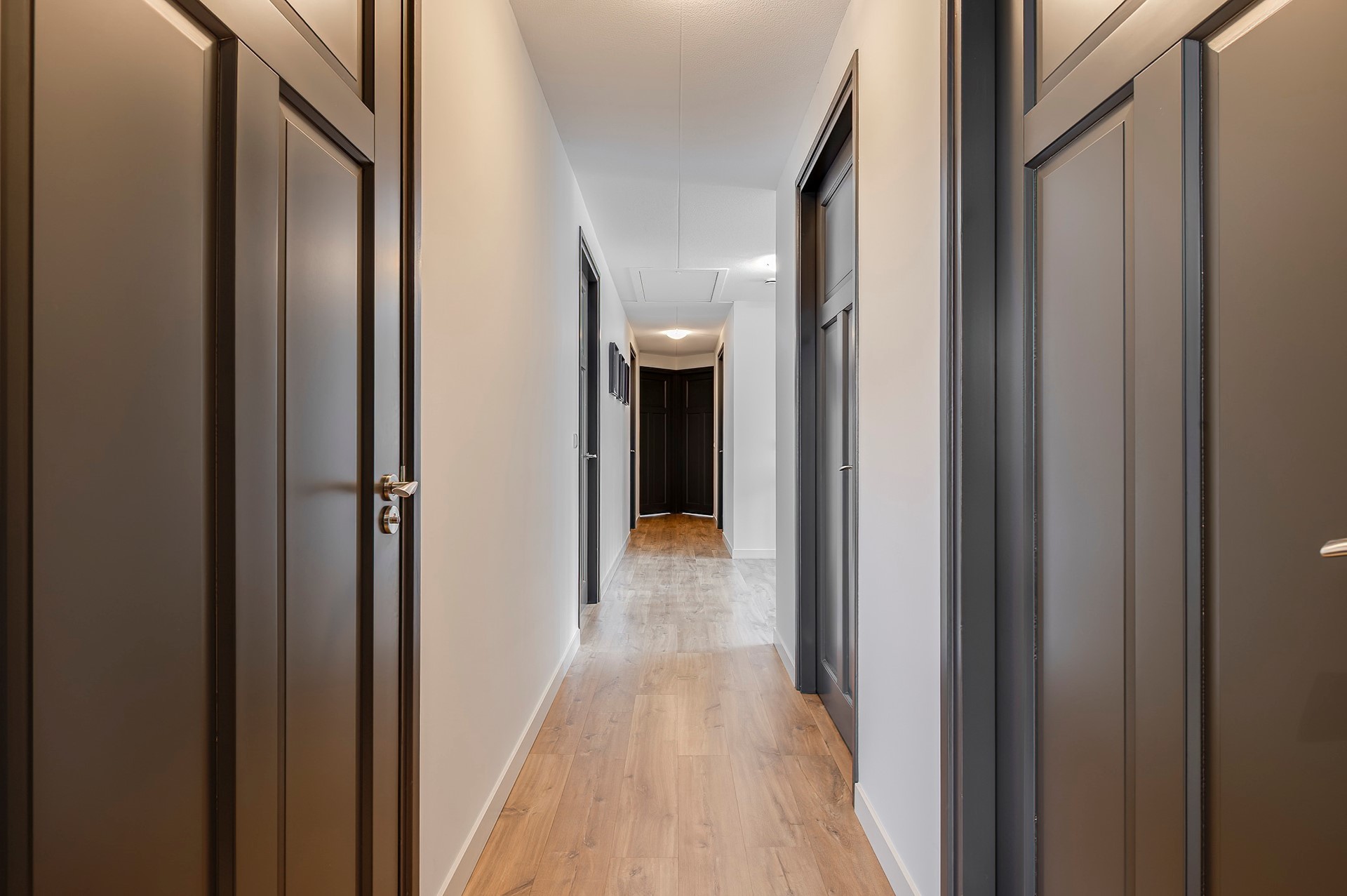 Bij binnenkomst valt direct de vide in de centrale hal op, een schitterende doorkijk naar de bovenverdieping die het gevoel van ruimte versterkt.