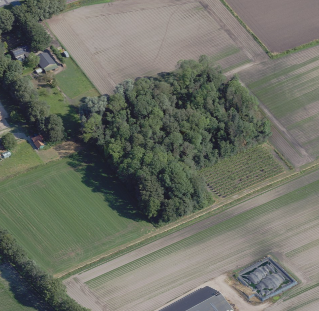Het perceel is bebost met onder andere volwassen eiken met een stamdikte van veelal tussen 25-40 cm. De grondsoort betreft zandgrond. Het perceel is als agrarisch aangemerkt, maar als natuur (bos) in gebruik.