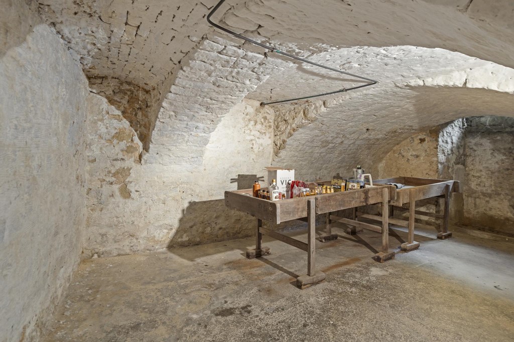 Naast de keuken is een praktische bijkeuken gelegen voorzien van een voorraadkast een gootsteen en aansluiting voor het witgoed. Ook is de meterkast fraai weggewerkt in de kastenwand. Vanuit hier is de gewelfde kelder toegankelijk, opgedeeld in drie ruimtes.