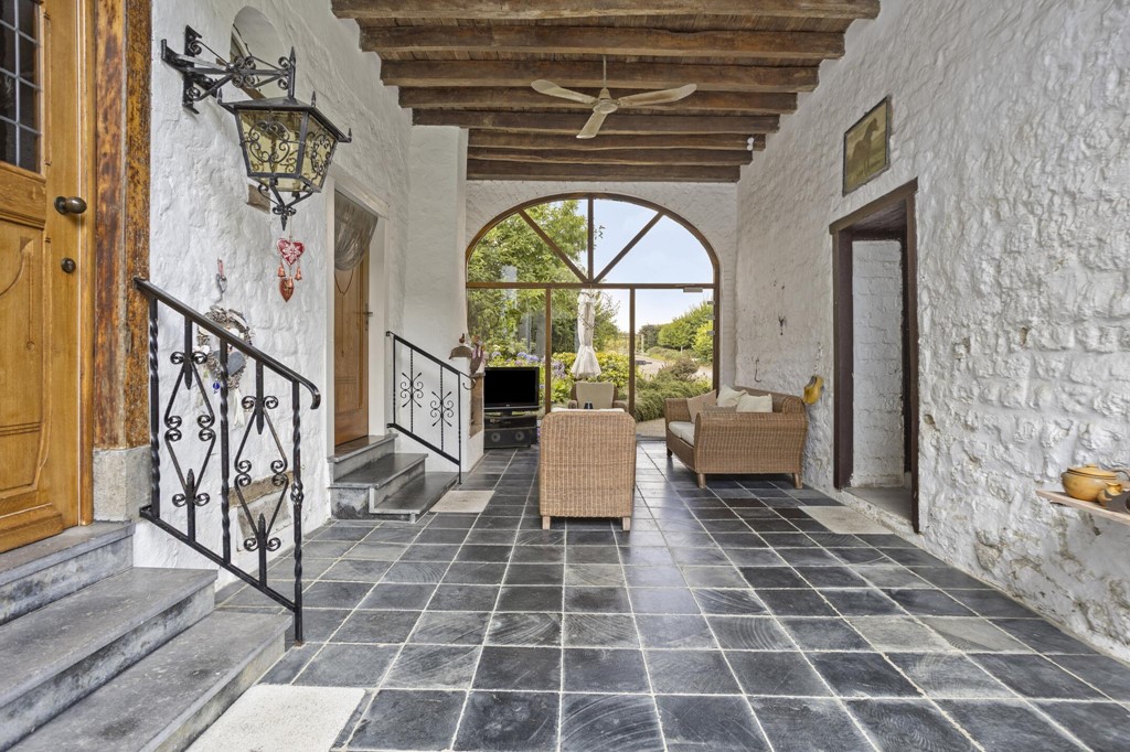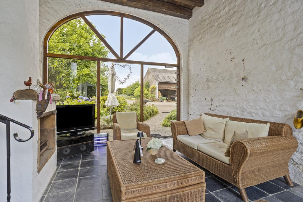 Aansluitend aan de woning is een mooie buitenruimte gerealiseerd waar het heerlijk beschut zitten is. Ideaal voor lange zomeravonden. De aanwezige houthaard kan bovendien voor een warmte zorgen tijdens de wat koelere dagen. De ruimte is netjes afgewerkt met een tegelvloer en verbindt de woning met het bedrijfsgedeelte. Bovendien is er aansluiting voor een tv-aanwezig. De grote glaspui met een loopdeur geeft direct toegang tot het bedrijfserf. Ook heb je een mooi zicht op de paardenstallen wanneer je hier 's ochtend een kopje koffie drinkt.