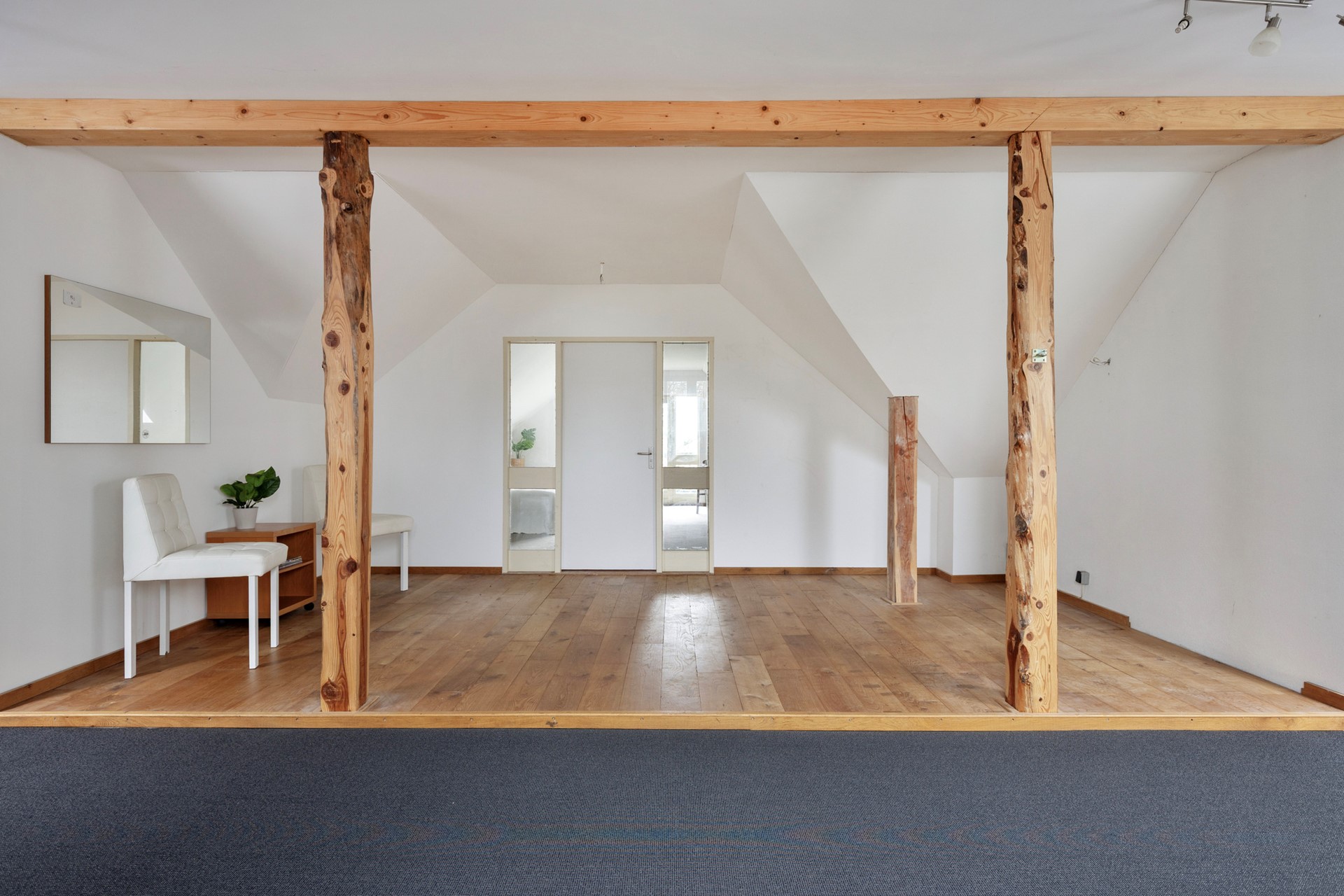 Het vroegere stalgedeelte is verbouwd tot een sfeervolle, multifunctionele ruimte die tal van mogelijkheden biedt. De ruimte is afgewerkt met een onderhoudsvriendelijke tegelvloer en beschikt over een dubbelsteense muur met authentieke stalramen met diepe vensterbanken. Via de dubbele deuren is er een directe verbinding met buiten, waardoor deze plek ideaal is als praktijkruimte, atelier, hobbyruimte, werkplaats of extra leefruimte. Direct grenzend aan de multifunctionele ruimte bevindt zich een praktische extra kamer die dienst kan doen als wachtruimte, entree of ontvangstruimte. Dankzij de aparte toegang vanaf buiten is deze ruimte ideaal voor wie een praktijk of kantoor direct aan huis wil realiseren.