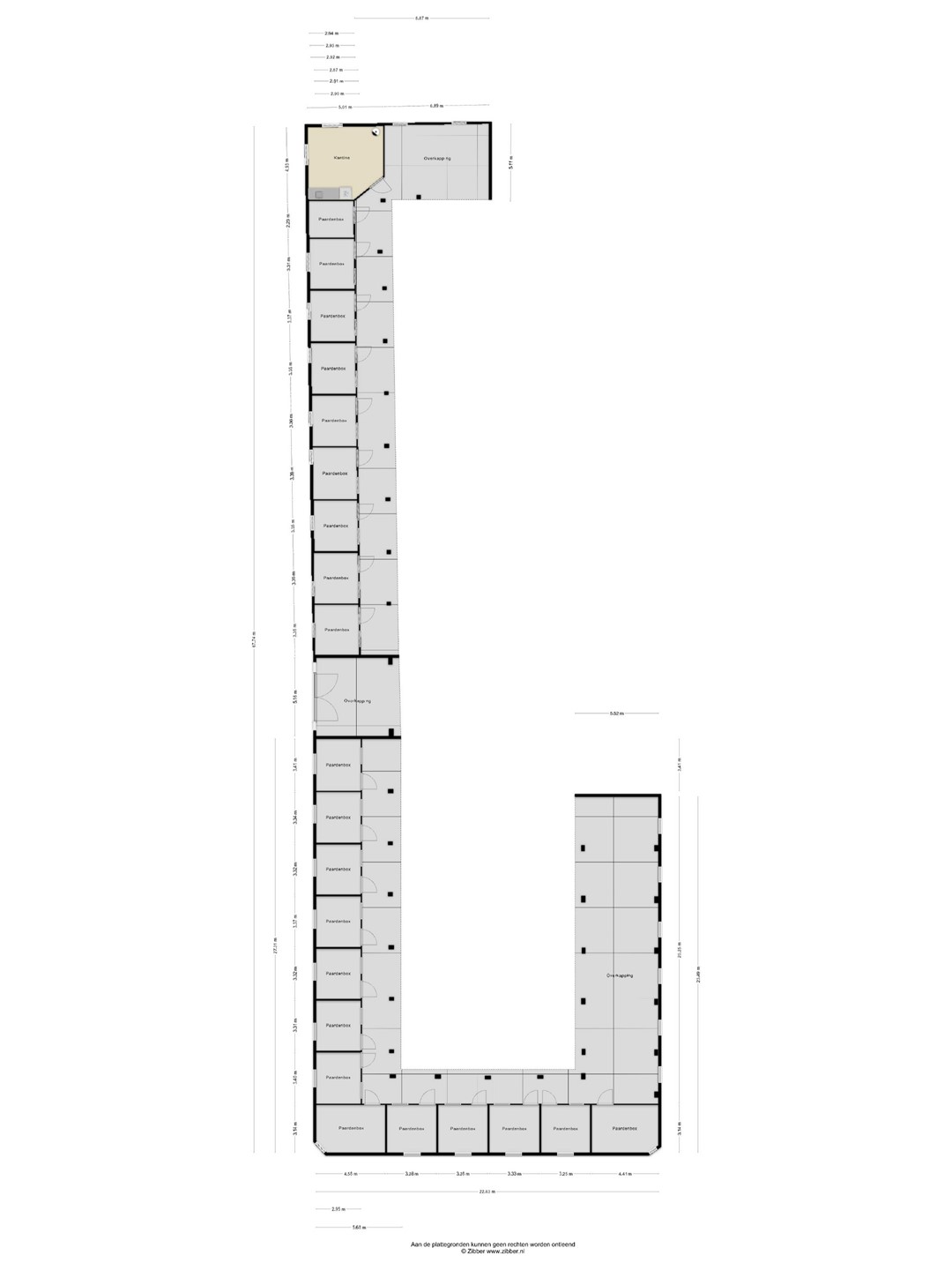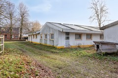 3 m. In de rechtervleugel bevindt zich bovendien een praktische kantine. Een deel van het gebouw is in gebruik als open-front werktuigenberging. Deze royale ruimte is uitermate geschikt voor het stallen van machines en materialen en biedt tevens voldoende mogelijkheden om een poets- en wasplaats voor meerdere paarden te realiseren. De locatie beschikt tevens over een verleende omgevingsvergunning voor het realiseren van een rijhal, waarvan al reeds het fundament is gemaakt.