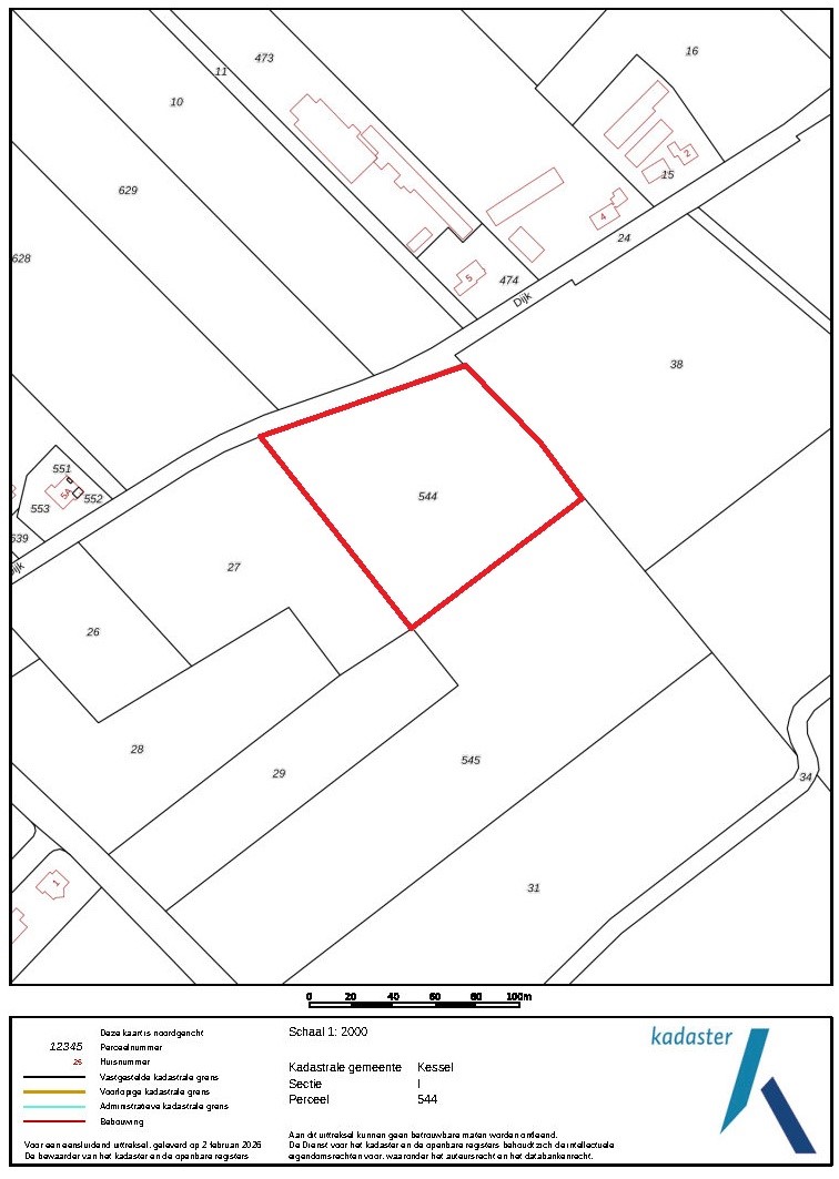 Wij bieden u een mooi rechthoekig gelegen perceel cultuurgrond aan, gelegen aan de Dijk in Kessel. Het perceel is toegankelijk middels een verharde weg en is geschikt voor de teelt van diverse soorten akkerbouw- en tuinbouwgewassen of boomteelt. Tevens leent het perceel zich ideaal als dierenweide (paardenweide).