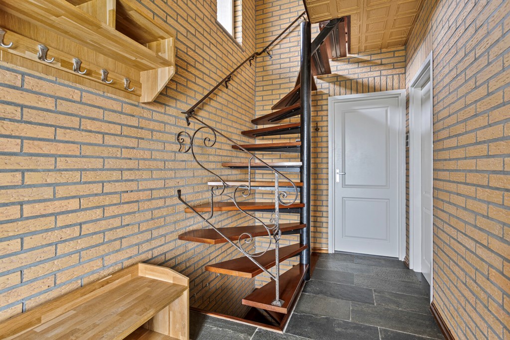 Via de voordeur treedt u de woning binnen in een ruime hal met schoonmetselwerkwanden uitgevoerd met steenstrips en een vloer met leisteen tegels. In de hal bevindt zich de meterkast en trapopgang naar de eerste verdieping. Vanuit de hal is er tevens toegang tot de 2 aansluitende kelders met een oppervlakte van ca 8 m² en 10 m² en is er doorgang naar de woonkamer.