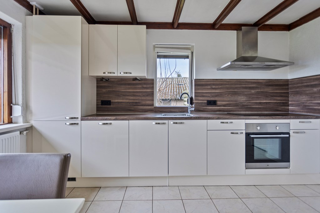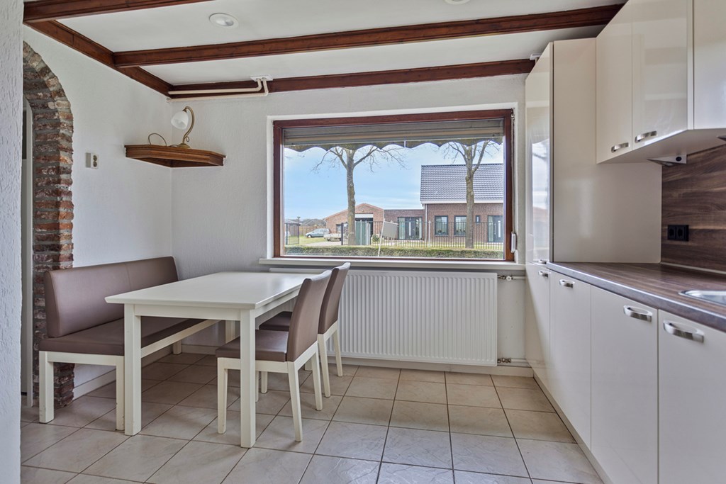 De keuken (2018) heeft een rechte opstelling en is voorzien van diverse inbouwapparatuur; koelkast, vaatwasser, spoelbak, 4-pits inductiekookplaat en afzuigkap (allen van het merk Etna). Vanuit de keuken is een ruime bijkeuken bereikbaar voorzien van een keukenblokje en twee bergkasten. De bijkeuken heeft een achterom naar het overdekt terras.