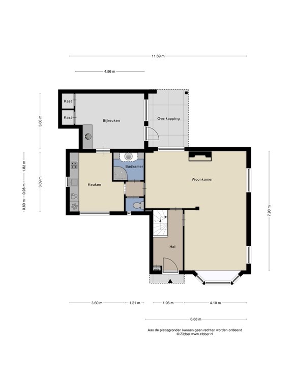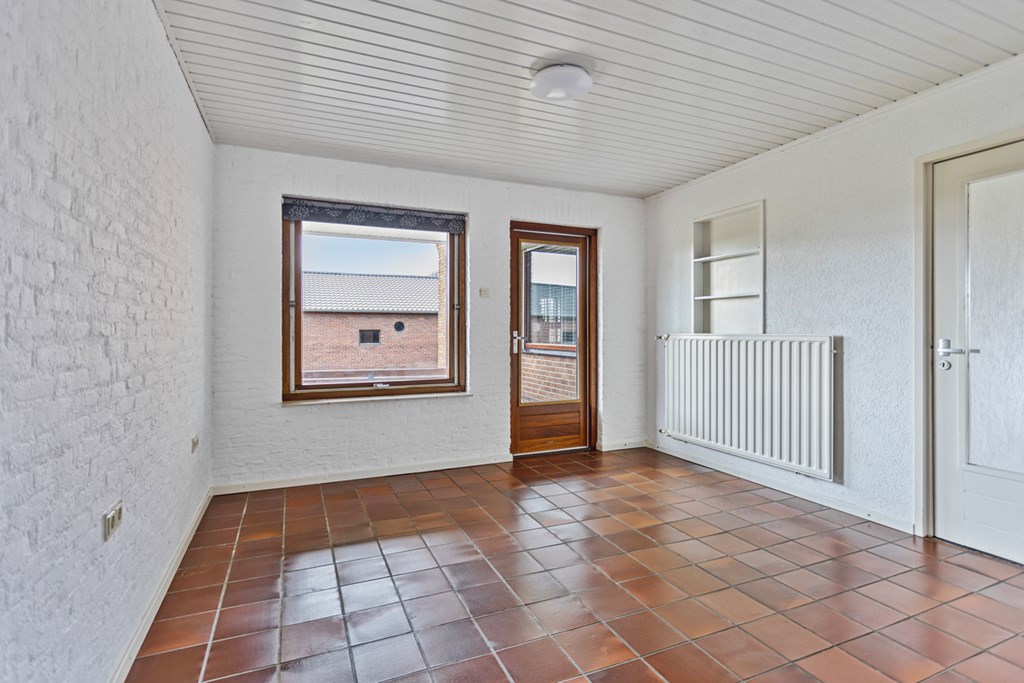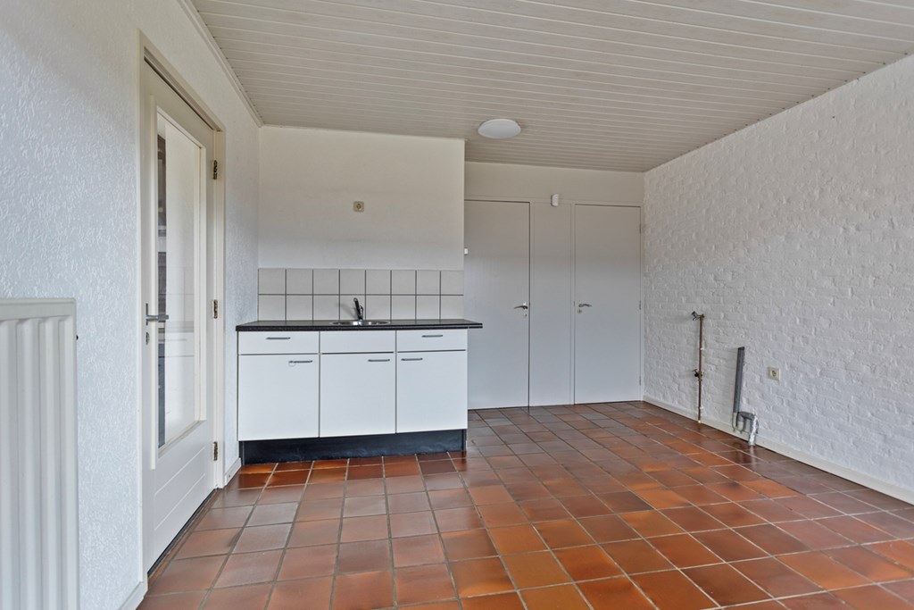 Vanuit de keuken is een ruime bijkeuken bereikbaar voorzien van een keukenblokje en twee bergkasten. De bijkeuken heeft een achterom naar het overdekt terras.
