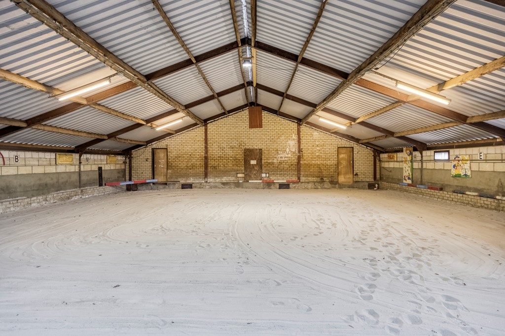 Indeling: werkplaats, paardenbox, rijbak en bergruimte