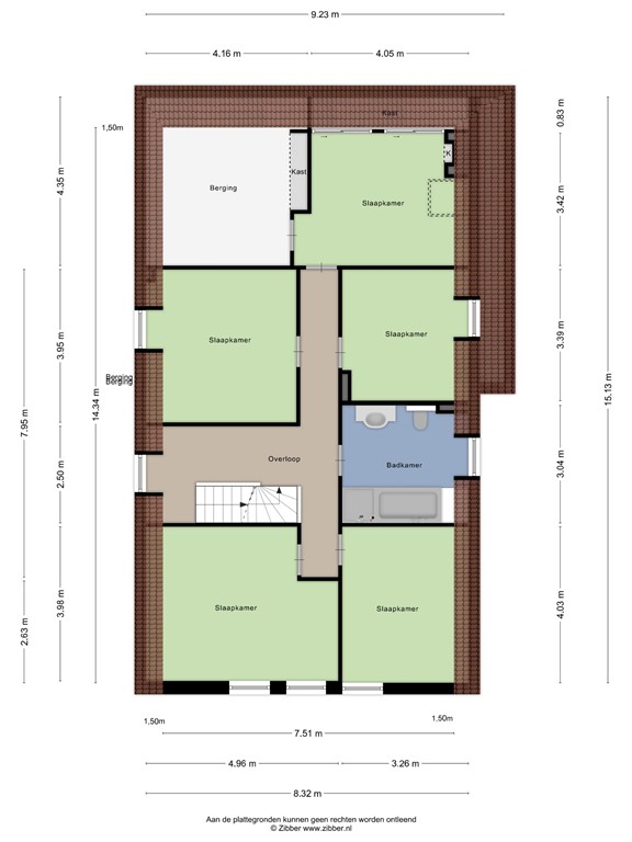 Twee andere kamers zijn voorzien van een dakkapel met draai-/kiepramen, terwijl de vijfde slaapkamer is uitgerust met een dakraam en een praktische schuifwandkast in de knieschotten.