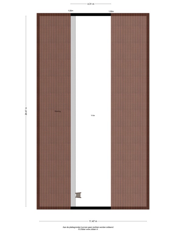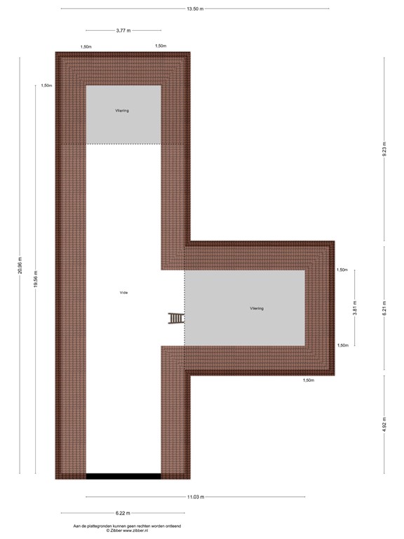 Vloeroppervlakte: 70 x 15 = ca. 1.050 m²