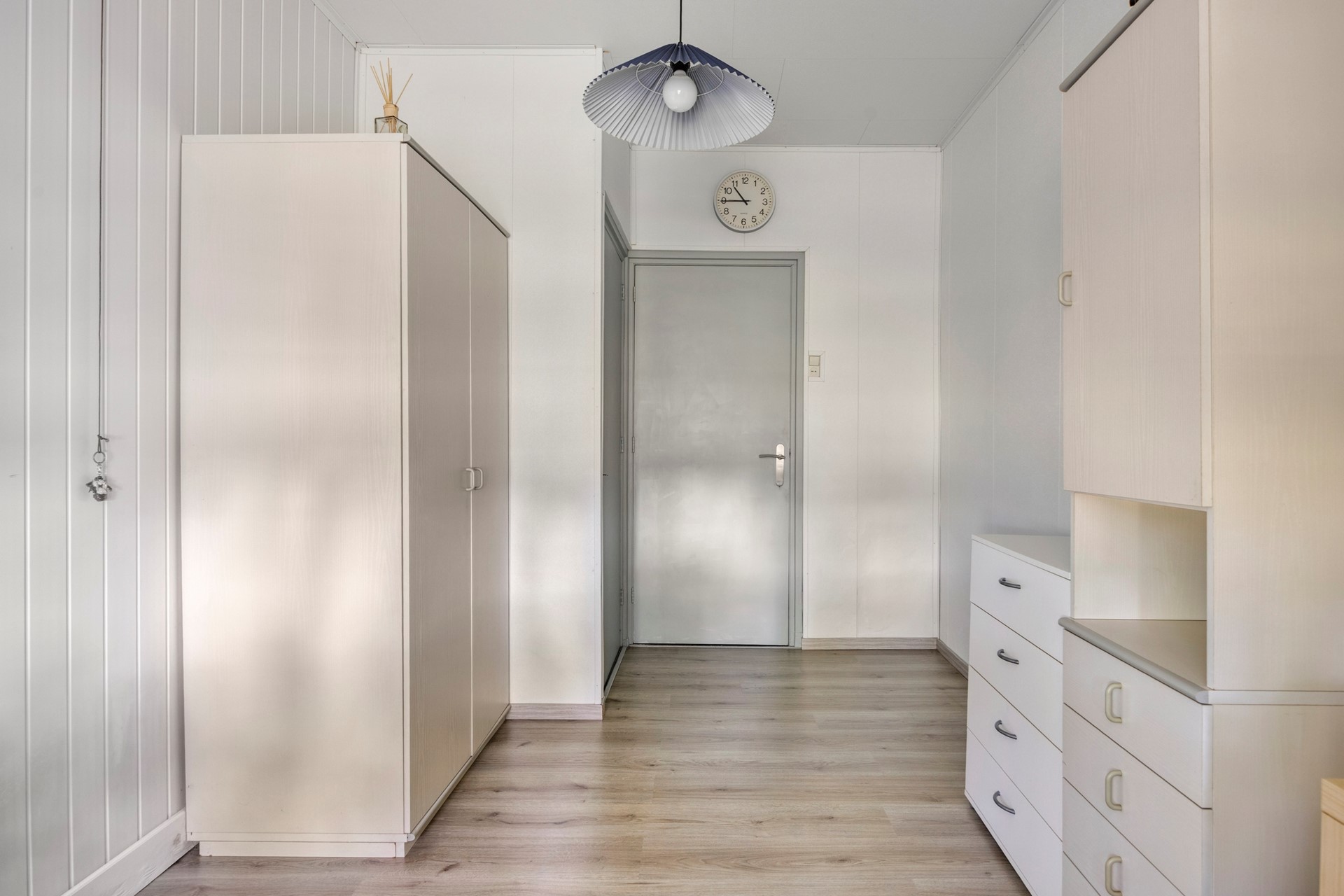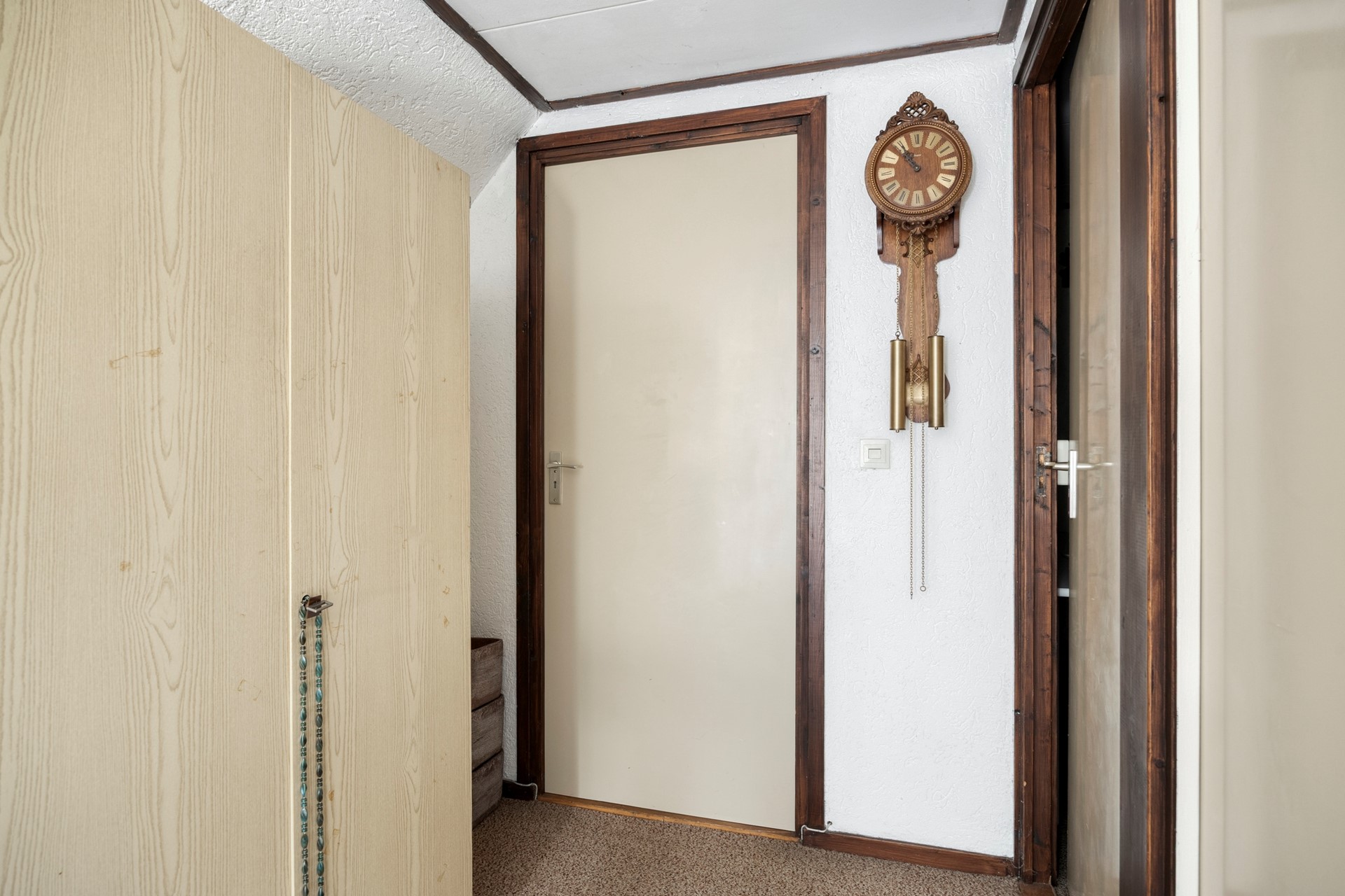 overloop; 2 slaapkamers (waarvan 1 met vaste wastafel) en bergzolder met vaste kast.