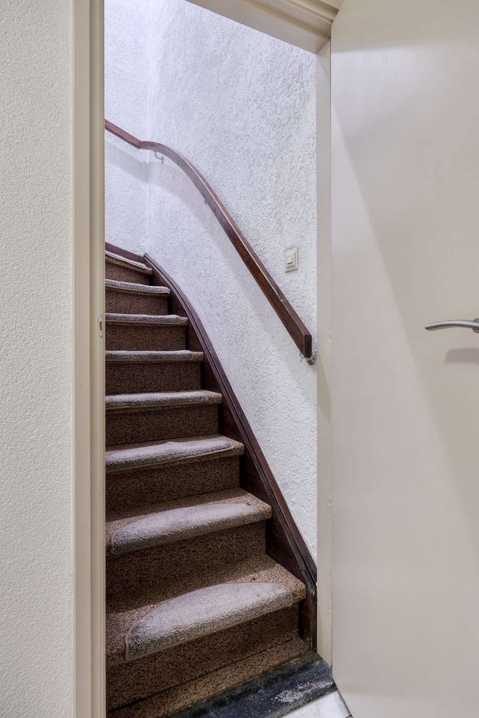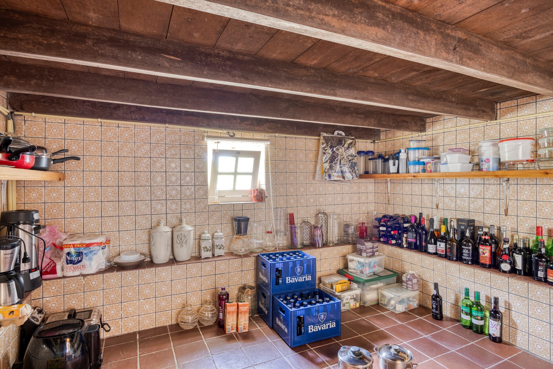portaal / bijkeuken met c.v.-opstelling, wasmachine- en drogeraansluiting en vaste wastafel; toilet met vaste wastafel; badkamer met douche en vaste wastafel; keuken met keukeninrichting voorzien van apparatuur (van circa 1985); kelder; opkamer / slaapkamer; hal met meterkast; woonkamer / eetkamer met tegelvloer en voorzien van vloerverwarming en schouw met open haard (niet in gebruik); kantoor / slaapkamer met vaste kast; gang met garderobe en trap naar eerste verdieping; slaapkamer met vaste kast; badkamer met ligbad en vaste wastafelmeubel; toilet met vaste wastafel;.