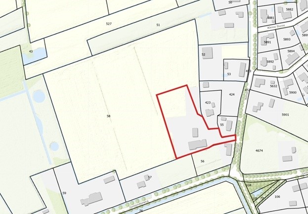 Het perceel is verkaveld en ontsloten aan de huiskavel / het object.