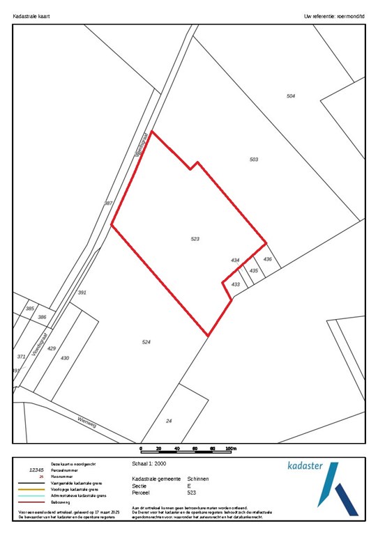 Gemeente Schinnen, sectie E, nummer 523 groot ca. 01.88.90 ha.