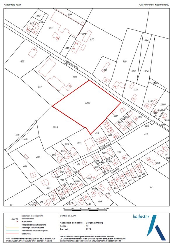 Gemeente Bergen Limburg, sectie R, nummer 1229, groot 01.01.46 ha.