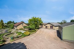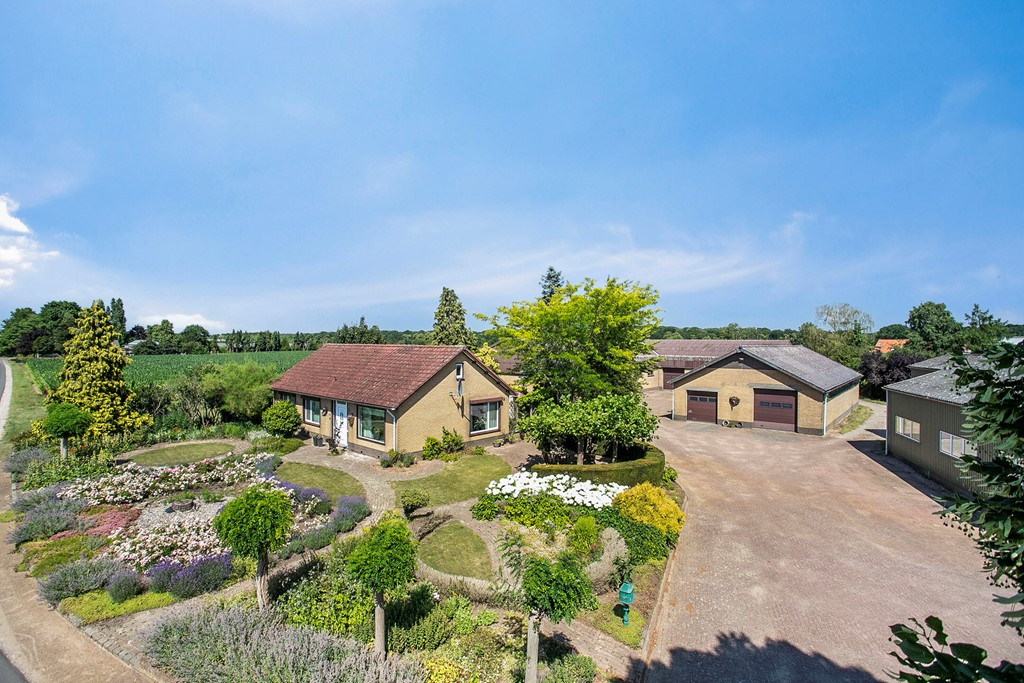 Aan een rustige weg met een prachtige ligging is deze goed onderhouden levensloopbestendige bedrijfswoning met fraaie natuurlijk aangelegde tuin en drie multifunctionele loodsen gelegen.