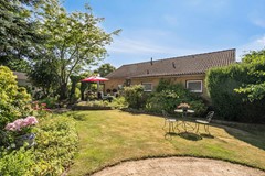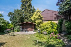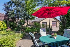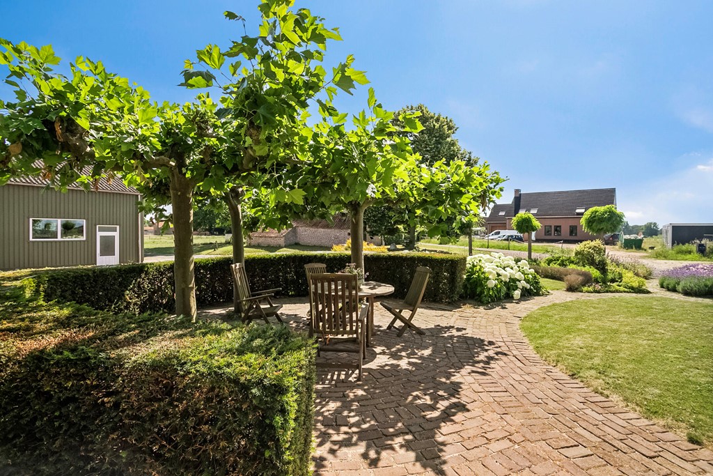 De fraai aangelegde tuin is een waar paradijs voor de liefhebber met groene vingers! Met diverse plantenborders die het hele seizoen door kleur en leven brengen. Bloemen, struiken en groen wisselen elkaar af, waardoor elke hoek van de tuin een nieuwe verrassing biedt. De verschillende terrasjes bieden plek om in alle rust van de tuin te genieten. In de zijtuin is een gezellig terrasje gesitueerd waar je heerlijk kunt zitten in de schaduw van platanen. Vanuit de tuin is het bedrijfserf met ruime (bedrijfs)oprit toegankelijk.
