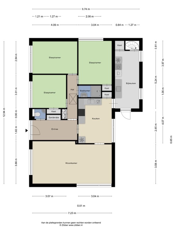 De derde slaapkamer is ruim van opzet en is afgewerkt met een pvc-vloer. De muren zijn gestuct en het plafond is voorzien van houten schrootjes. De slaapkamers zijn allen voorzien van kunststof kozijnen met HR glas en rolluiken.