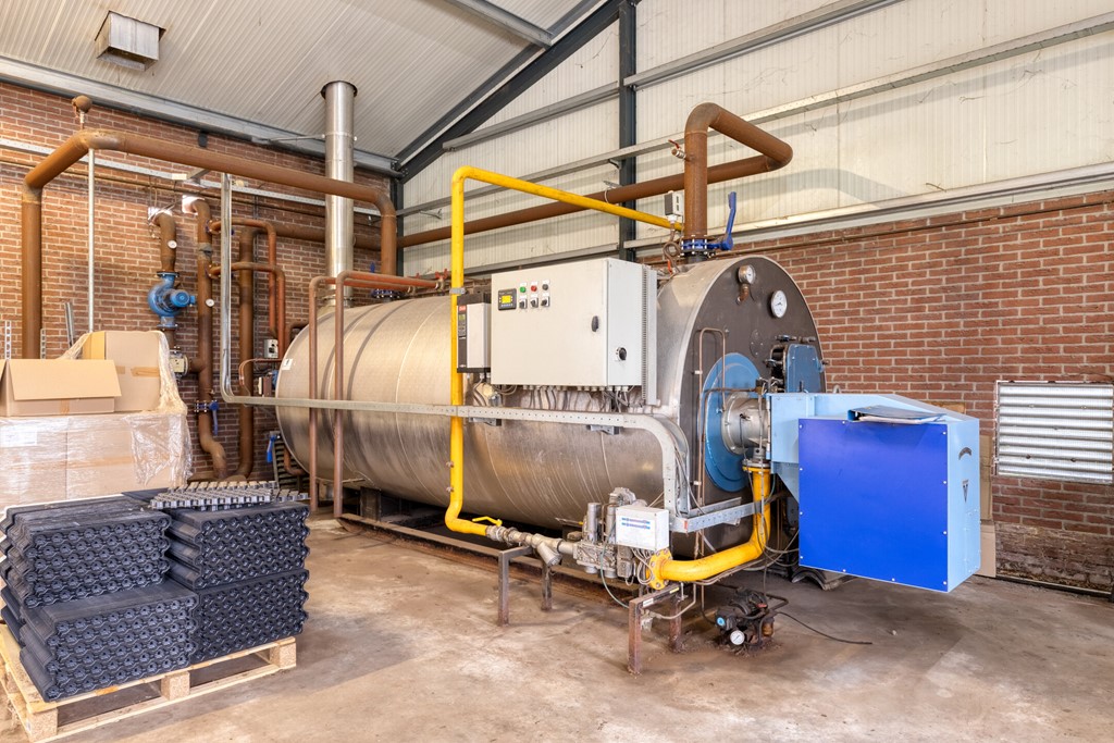 - Verwarmingsketel (gas en olie) met Vitotherm brander (2004) cap. 1.000 m.cal/h (er is echter geen gasaansluiting in de loods gesitueerd)