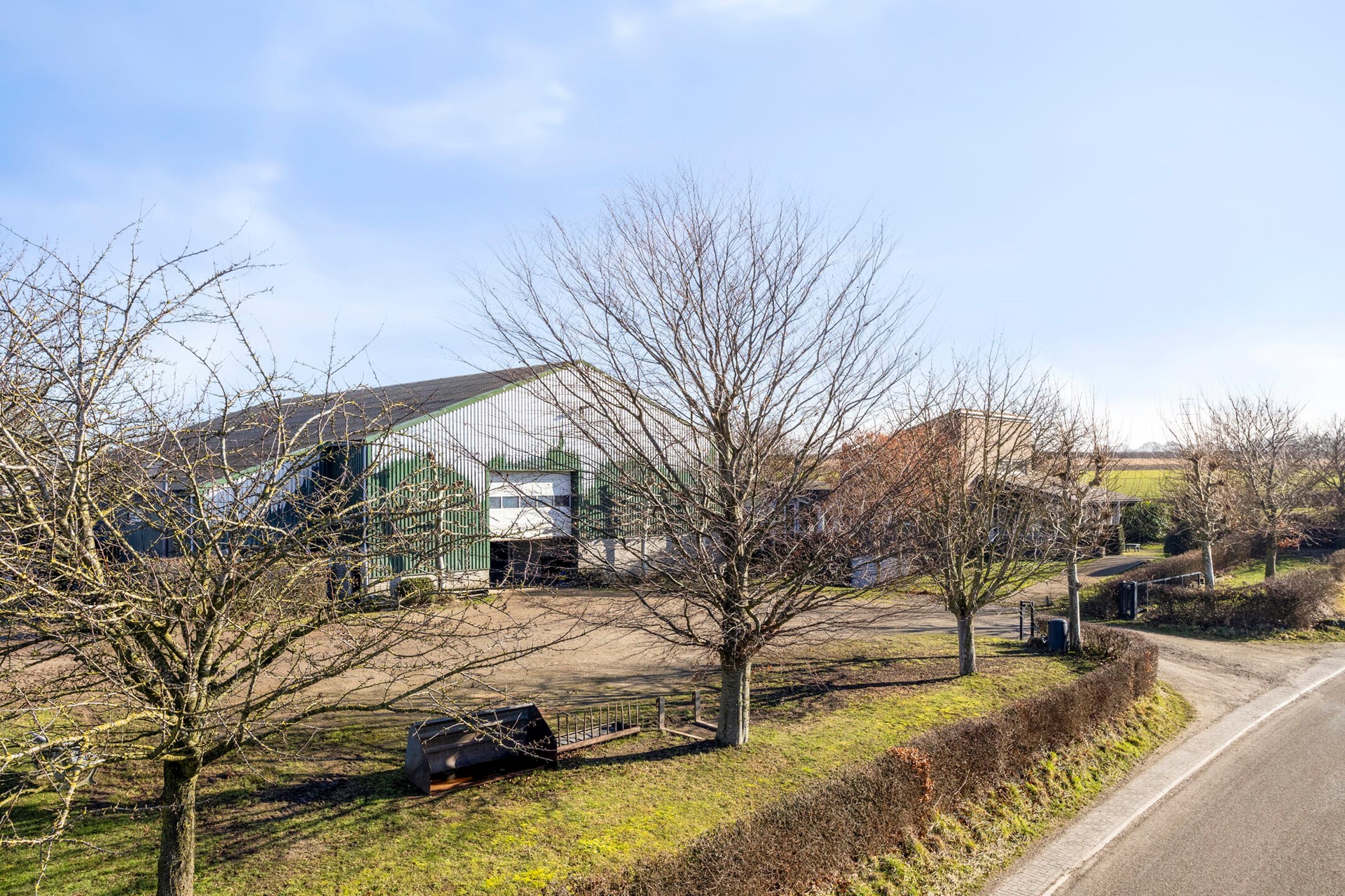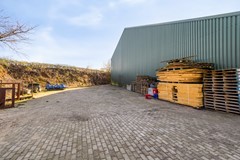 De loods is aan drie zijden vrijgelegen en daardoor uitstekend bereikbaar. Rondom de loods bevindt zich erfverharding van klinkers, terwijl aan de voorzijde korrelmixverharding is aangebracht. Het terrein is toegankelijk via twee opritten, waarvan de hoofdingang is voorzien van een toegangspoort die op afstand kan worden geopend.