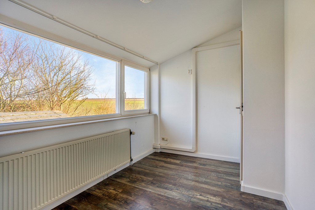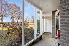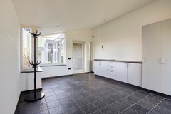Aangrenzend aan de keuken bevindt zich een (kantoor)ruimte, die tevens toegang biedt tot de achterentree. Vanuit deze achterentree is er een overdekte verbinding naar de bedrijfsloods. De ruimte beschikt over grote raampartijen, waardoor een prettig natuurlijk licht binnenvalt. De afwerking bestaat uit dezelfde leistenen vloer en gestucte wanden.