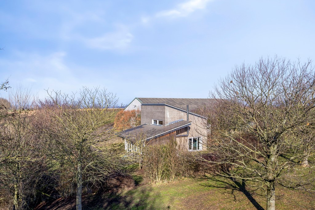 De bedrijfswoning is gebouwd in 1997 en architectonisch vormgegeven met gebruik van hoogwaardige, duurzame materialen. Dankzij de speelse hoogteaccenten en de zwevende daklijnen sluit het ontwerp van de woning prachtig aan bij het glooiende landschap, wat zorgt voor een bijzondere en harmonieuze uitstraling. Grote raampartijen bieden een panoramisch uitzicht over de prachtige omgeving en laten veel natuurlijk licht binnen.