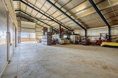 De bedrijfsloods (bj. 1997) heeft een oppervlakte van ca. 750 m² (ca. 25 m x 30 m vrije overspanning) en is degelijk gebouwd. De loods is voorzien van een gevlinderde betonvloer en beschikt over een kantine met eenvoudig keukenblok, toilet, douche en een separate meterkast met een 3x35A aansluiting. Daarnaast is er een interne doorgang naar de woning, waar zich tevens een praktische werkplaats bevindt. De loods is voorzien van gevel- en dakisolatie (Dupanel). De buitengevel bestaat uit damwandprofielplaten en het dak is bedekt met golfplaten.