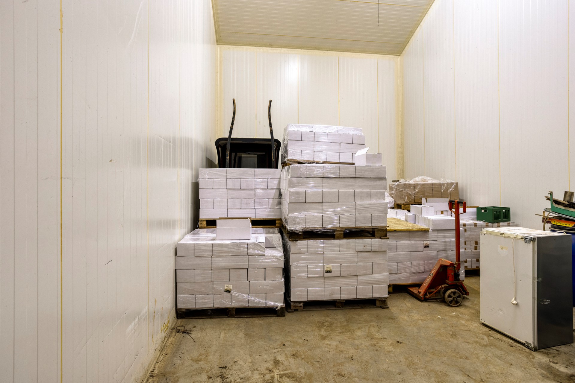 In de loods bevinden zich vijf ruime ULO-koelcellen, gebouwd middels sandwichpanelen van 130mm, elk met een afmeting van ca. 5,25 m breed, 8,75 m diep en 7 m hoog (ca. 320m³ inhoud), de besturing bestaat uit AT5 FC875-PC besturingscomputers. Boven de kantine bevindt zich een zolder waar de koelmotor is gesitueerd, evenals de elektrische boiler. De loods heeft een nokhoogte van ca. 9,5 m, waarbij de nok niet in het midden is gesitueerd. De spanten staan op 5 meter afstand van elkaar. De goothoogtes verschillen per zijde, de linkerzijde is ca. 4,5 m hoog en de rechterzijde ca. 6 m. De toegang van de loods is middels een loopdeur en een handmatige rolpoort met afmeting van ca. 5,40 m x 4,75 m.