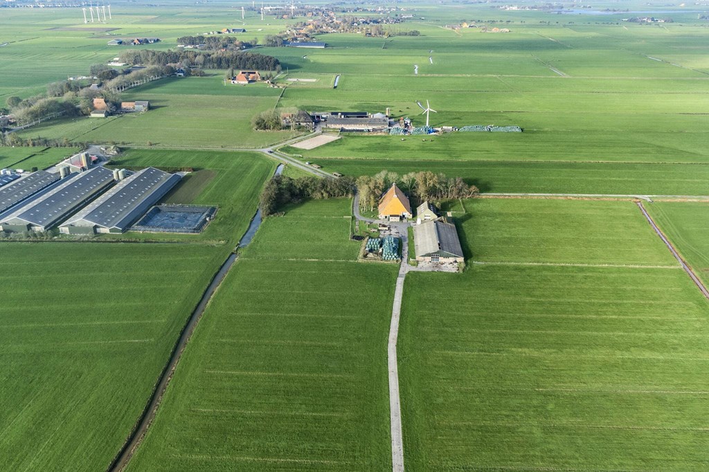 De landerijen zijn gelegen als huiskavel ten zuiden van de bedrijfsopstallen en strekt zich uit over een breedte van ca. 800 meter en loopt via de perceelsnummers 737 en 759 tot aan de dijk. De kavel heeft een totale oppervlakte van 36,27,20 ha waarvan toebehoort aan de erf en ondergrond ca. 0,50,00 ha, resteert er een oppervlakte landerijen van ca. 35,77,20 ha. De grondsoort betreft klei op greppels gelegen waarbij de perceelsnummers 736 en 759 minder draagkrachtige grond is.