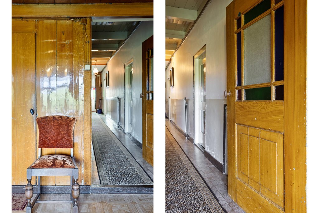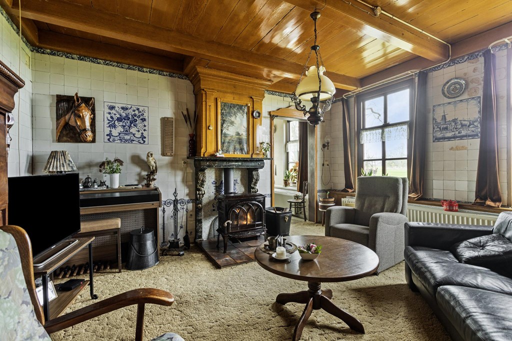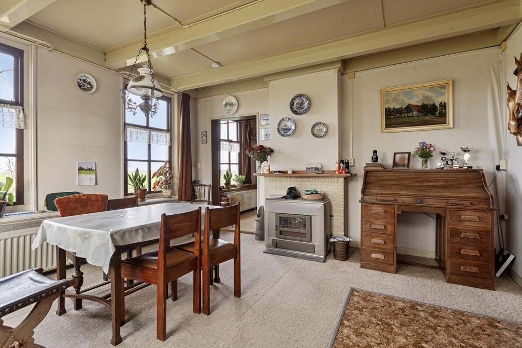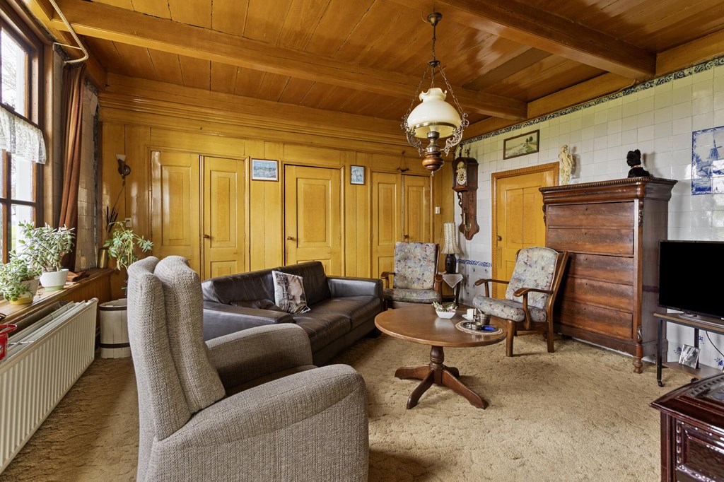 Begane grond: Woonkeuken, woonkamer met oude bedstedes, dwarsgang, bijkeuken, badkamer en toilet.