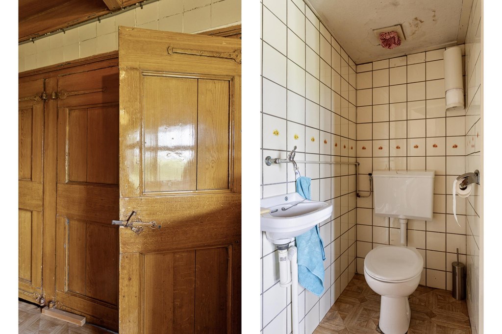 Er is geen functionele inrichting van deze ruimtes meer aanwezig. Enige onderdelen van de melkinstallatie zijn nog wel aanwezig en deze blijven achter. Overig zijn er in deze ruimte een douche en toilet aanwezig.