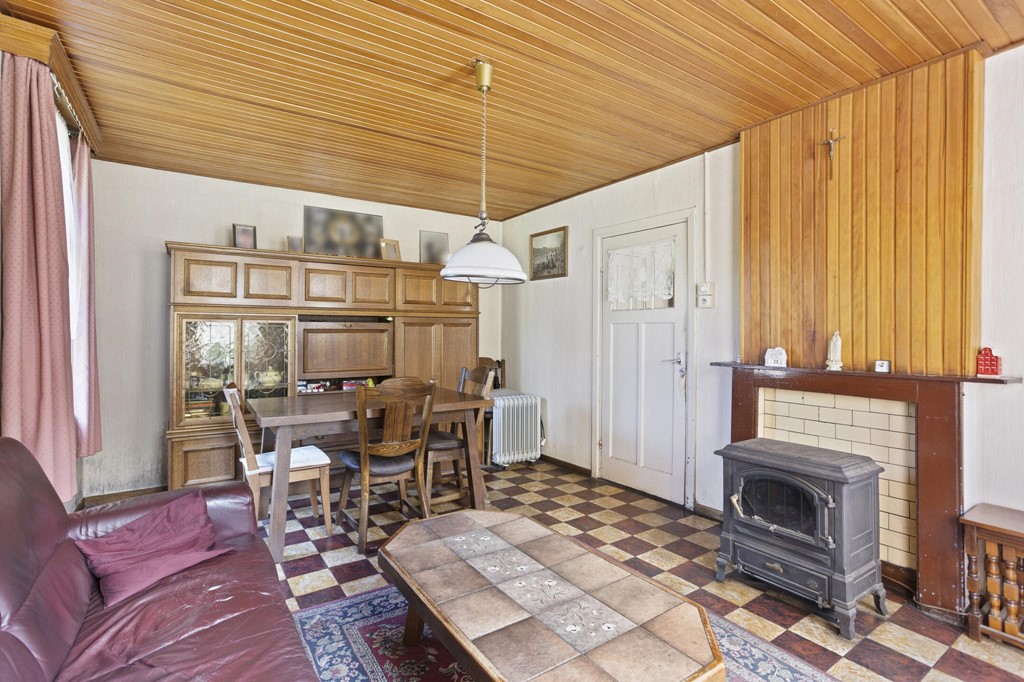 Ook de woonkamer is bereikbaar vanuit de eetkamer en ademt dezelfde charme uit, met identieke plavuizen en een tweede propaan kachel die de ruimte verwarmt. Daarnaast beschikt de woning over een kelder, ideaal voor opslag of provisie.