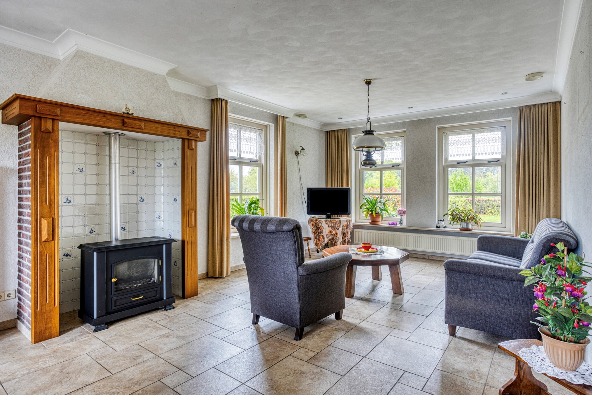 • centrale verwarming op aardgas (HR ketel, 2005) in alle woon- en verblijfsruimten.