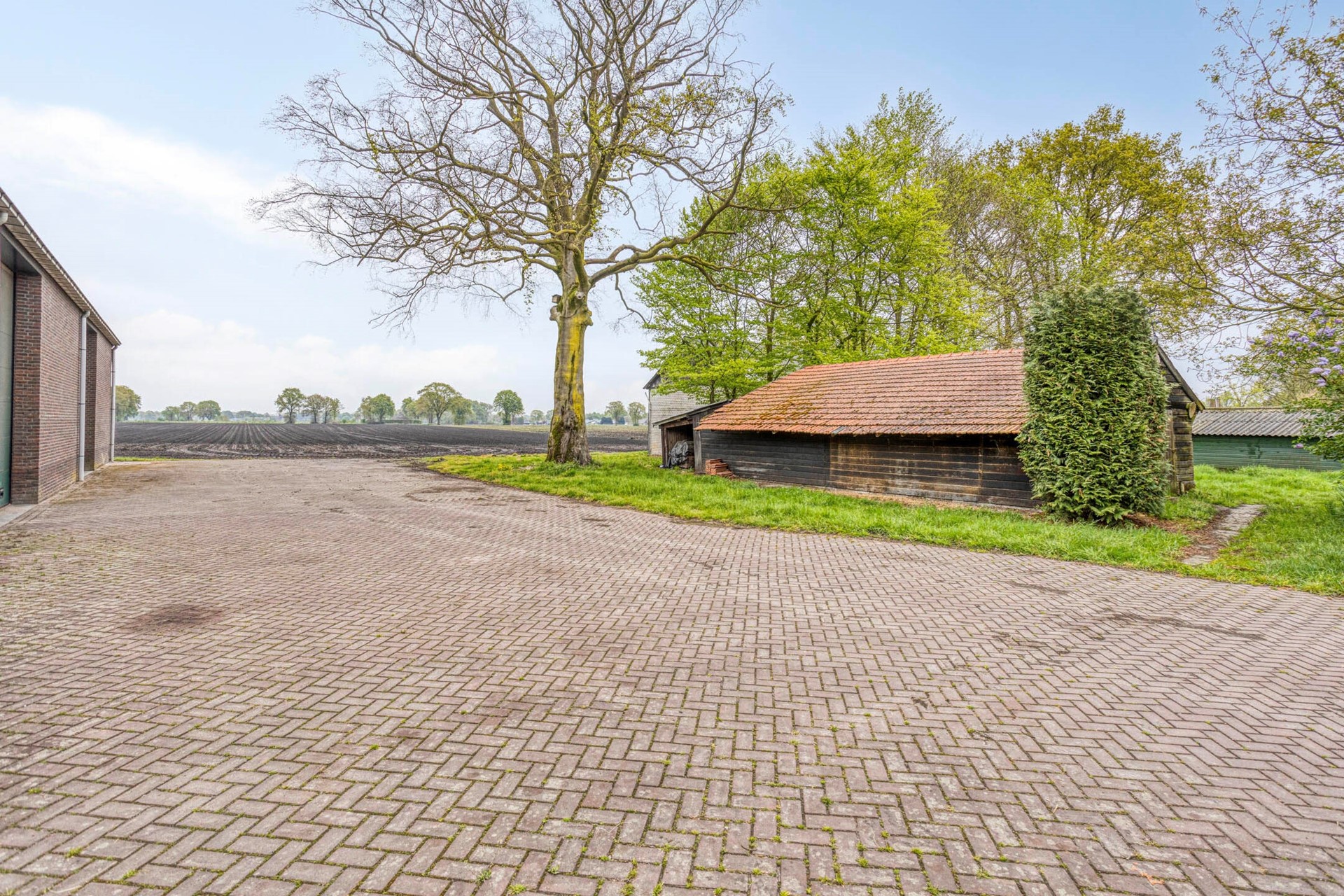 KOOP 1: Voormalig agrarisch bedrijf, bestaande uit een vrijstaande langgevel woonboerderij met vrijstaande garage, twee kleine stalletjes, veldschuur, grote vrijstaande schuur en verdere aanhorigheden, ondergrond, erf, tuin en landbouwgrond op een perc.opp. van circa 8.000 m2.