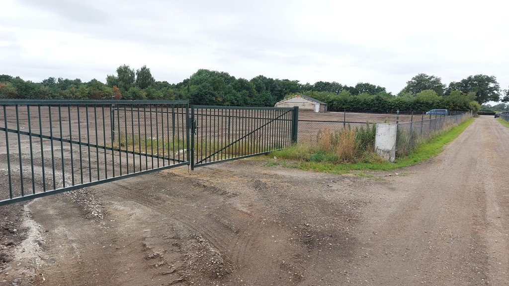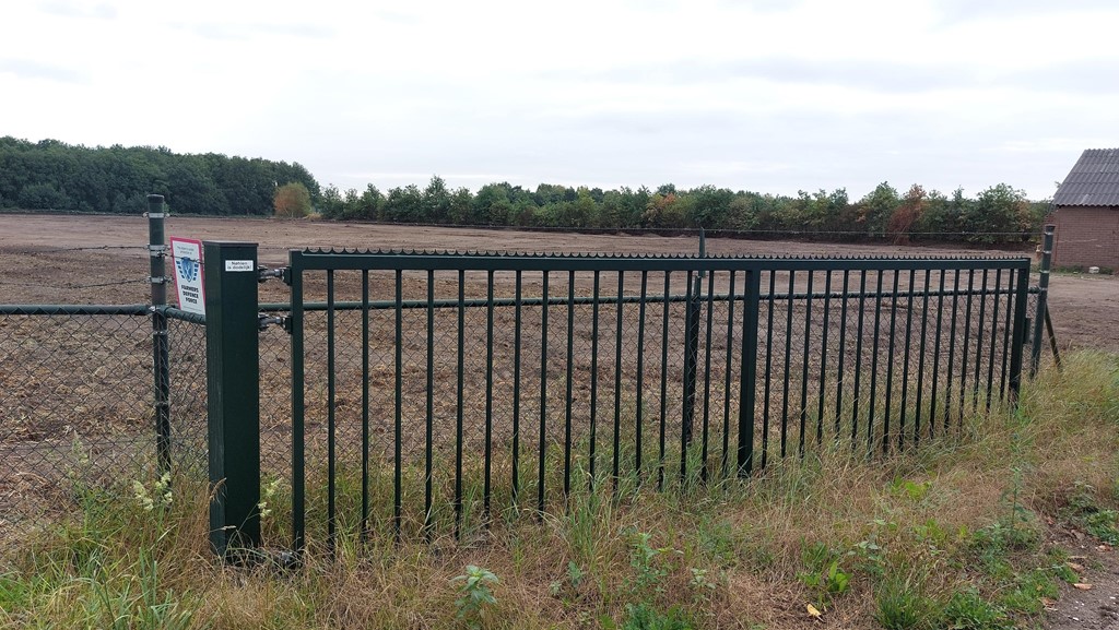 Het bouwvlak is omheind met een Heras hekwerk, toegankelijk middels vier toegangspoorten.
