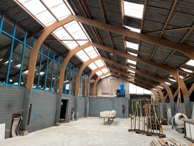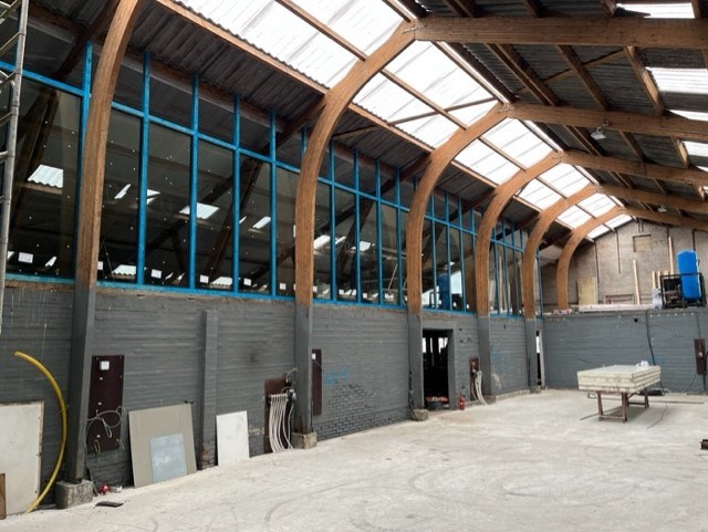 Bouwjaar 1975, ca. 11,6 m x 29 m, opp. ca. 335 m², voorzien van schuifdeuren