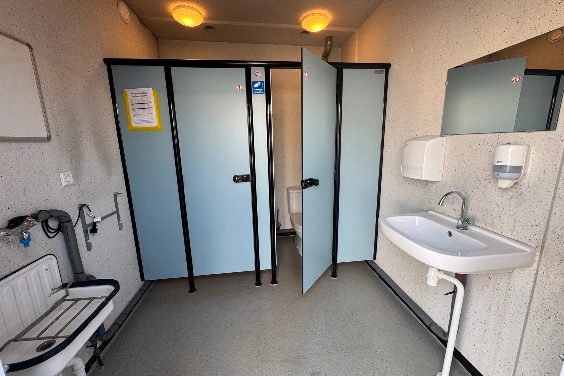 Op het terrein is een facilitaire ruimte aanwezig met 2 toiletten, een wastafel en een uitstortgootsteen.