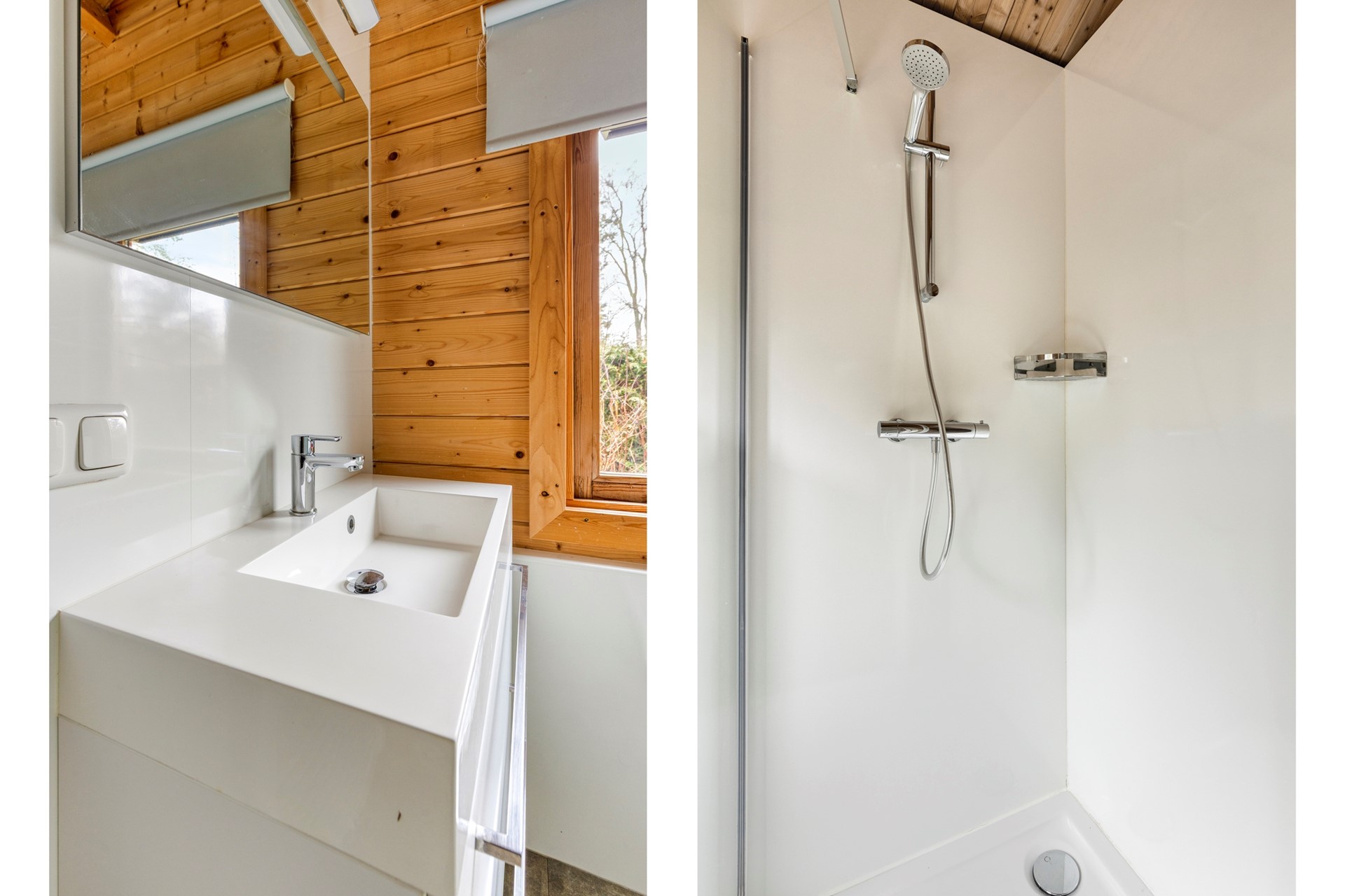 Op de begane grond bevinden zich twee comfortabele slaapkamers en een badkamer met douche, wastafelmeubel en toilet.