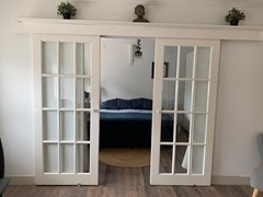 Op de bovenste verdieping zijn nog twee kamers, waarvan één met een extra pantry en een tweede douche en toilet. De grote slaapkamer hier heeft een aparte TV zithoek met een grote TV. Alle spullen die nodig zijn voor een huishouden, zijn aanwezig zelfs servies, pannen, bestek, schoonmaakspullen, beddengoed en handdoeken. U hoeft slechts uw persoonlijke spullen mee te nemen en u kunt direct wonen.De woning bevindt zich op korte afstand van winkels, openbaar vervoer en binnen 3 minuten bent u op de snelweg naar verschillende richtingen (Amsterdam op 15 minuten rijden). Het treinstation is op 7 minuten loopafstand.