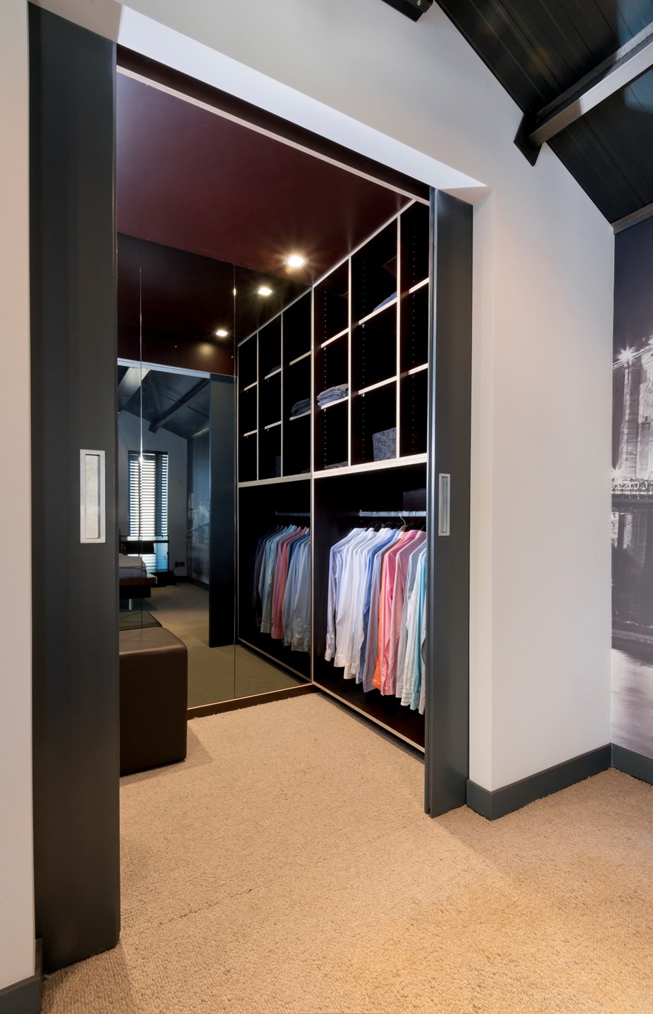 De master bedroom en luxe badkamer bevinden zich op een hoger niveau, wat zorgt voor extra privacy én een nog indrukwekkender uitzicht. De slaapkamer beschikt bovendien over een ruime walk-in closet.