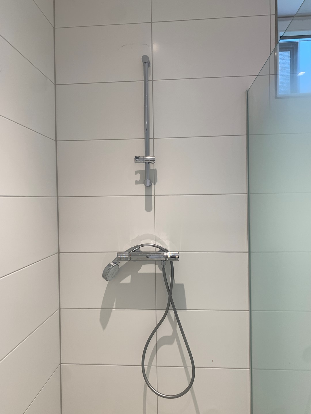 The apartment has 2 large bedrooms with floor heating which is separately adjustable in every space. The 2 bathrooms have walk in showers, washbasins with cupboards; one of the bathrooms also has a toilet and a guest toilet is to be found in the hallway.