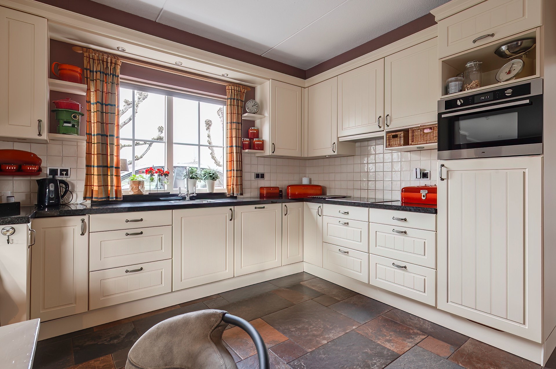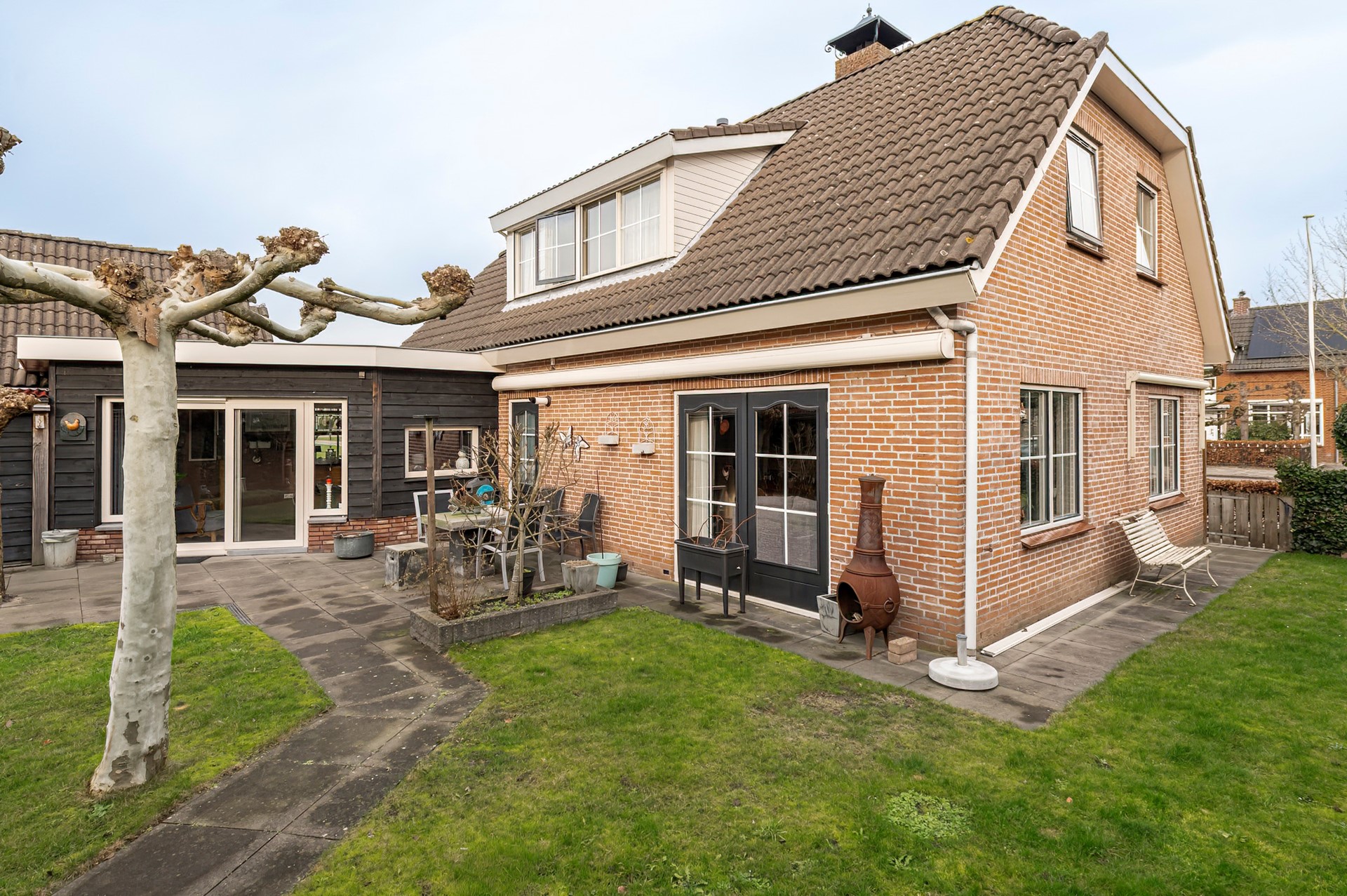 Bij binnenkomst ervaar je direct de prettige sfeer. De hal geeft toegang tot het toilet, trapopgang en de leefruimtes op de begane grond. De woonkamer is ruim en heerlijk licht dankzij de open raampartijen wat zorgt voor een uitnodigend gevoel. De woonkamer beschikt over een open haard die niet alleen warmte biedt, maar ook een stijlvol middelpunt vormt. Aan de achterzijde van de woonkamer zorgen openslaande deuren voor een directe verbinding met de tuin. Aansluitend ligt de keuken met eetkamer die zorgt voor een fijne verbinding tussen koken, eten en ontspannen. De keuken is uitgevoerd in een lichte kleurstelling en voorzien van diverse inbouwapparatuur. Verder is de eetkamer voorzien van een schuifpui waardoor binnen en buiten naadloos in elkaar overlopen en er veel natuurlijk licht binnenvalt. Van zowel uit de keuken als de hal heb je toegang tot de aan de voorzijde van de woning gelegen kantoorruimte, wat deze woning bij uitstek geschikt maakt voor thuiswerken, een praktijk of kantoor aan huis.
