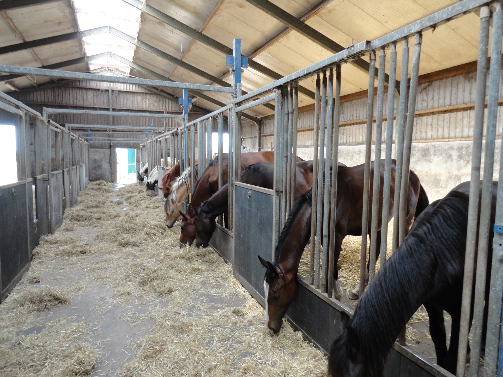 Ingedeeld en in gebruik als: groephuisvesting voor het houden van het opfokken van de paarden en veulens met 3 individuele luxe paardenboxen met separaat bergplaats voor hooi en stro.