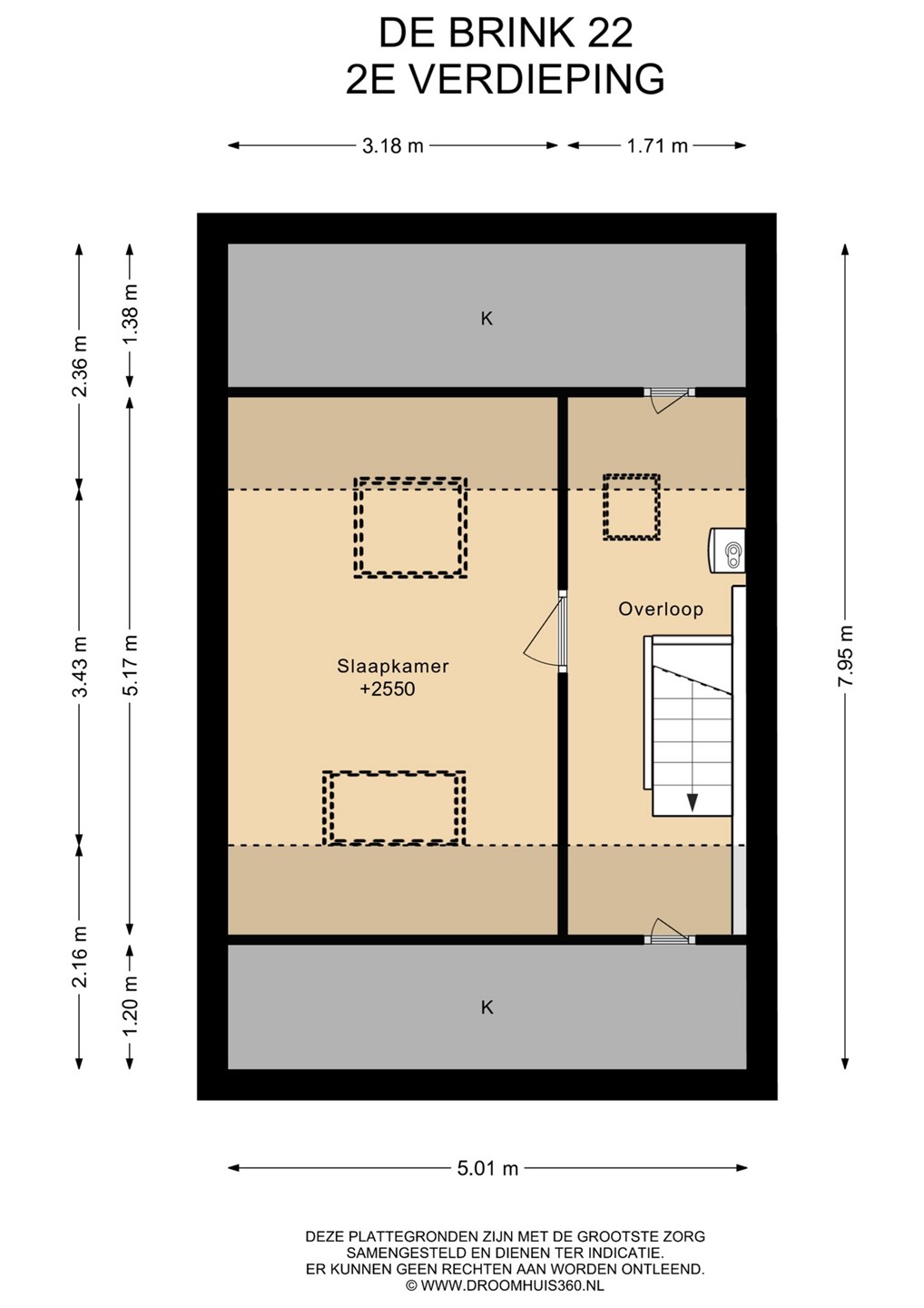 De 3de slaapkamer ligt aan de tuinzijde en is wat compacter van formaat en daarmee geschikt als kinder-, werk- of hobbykamer.