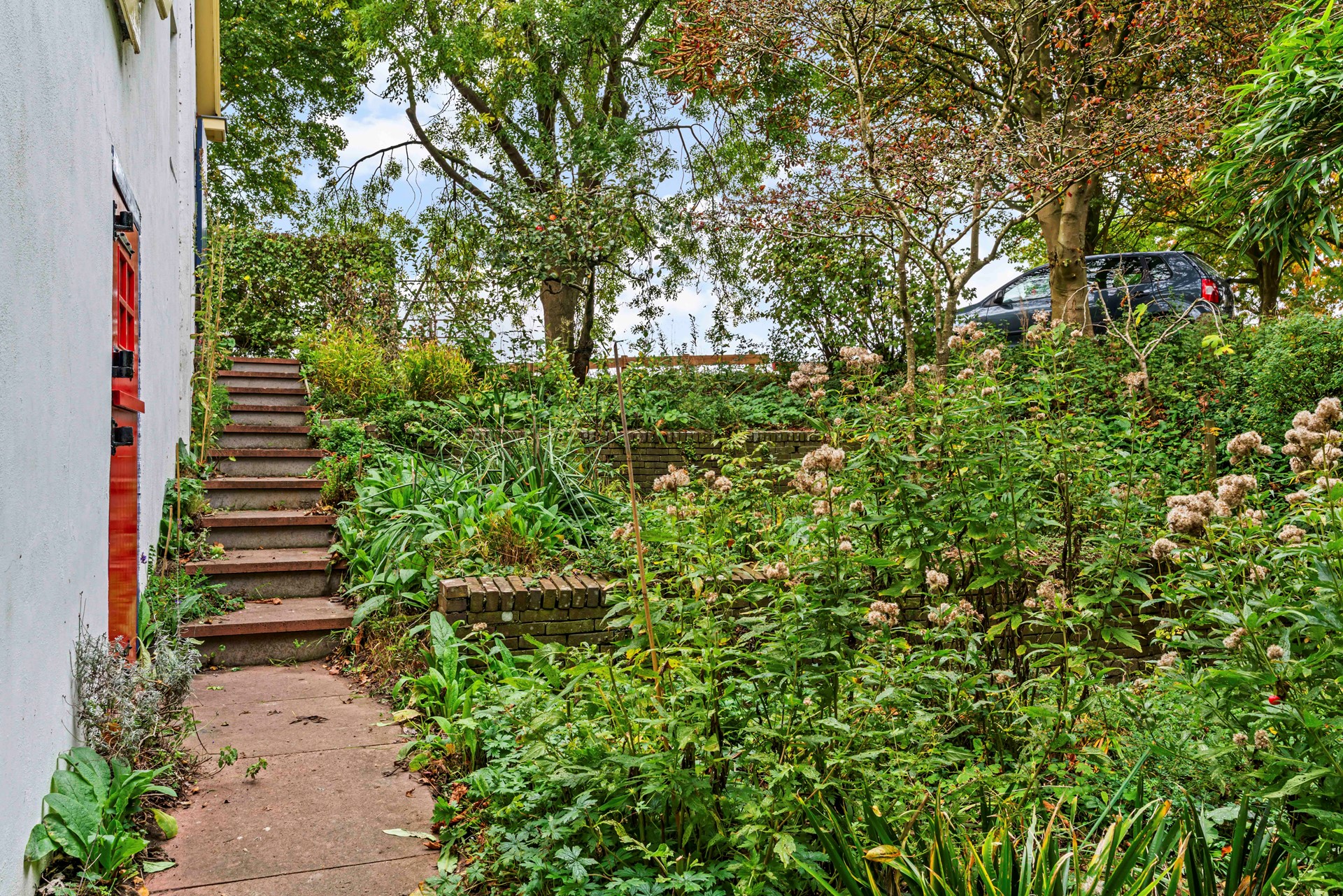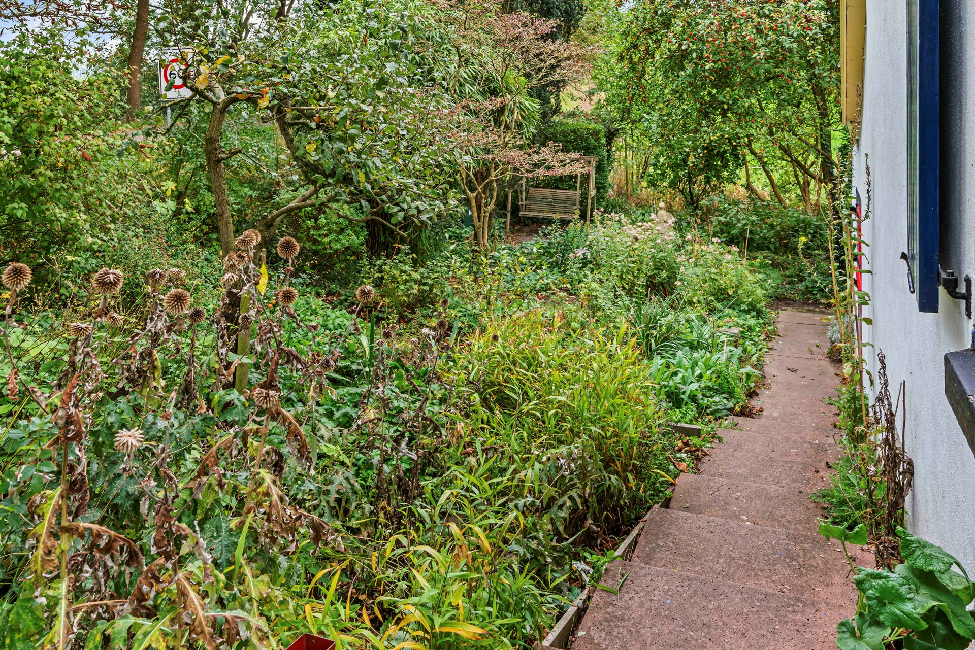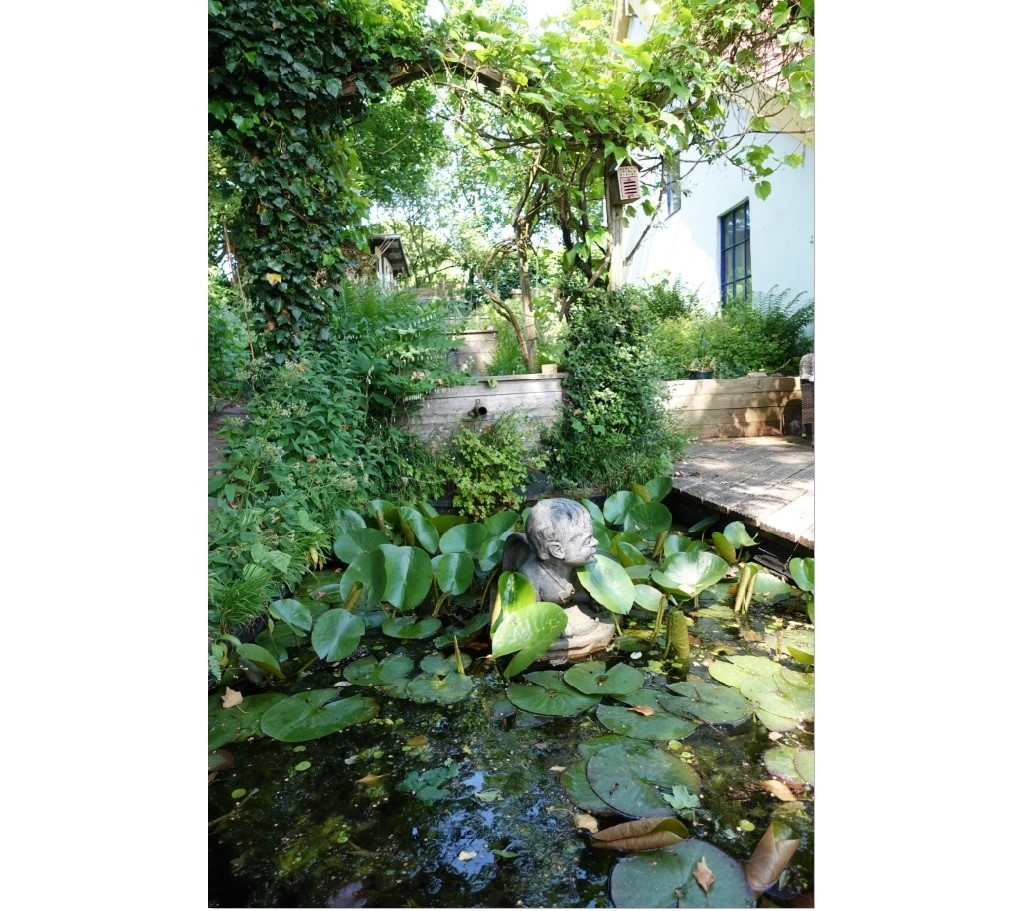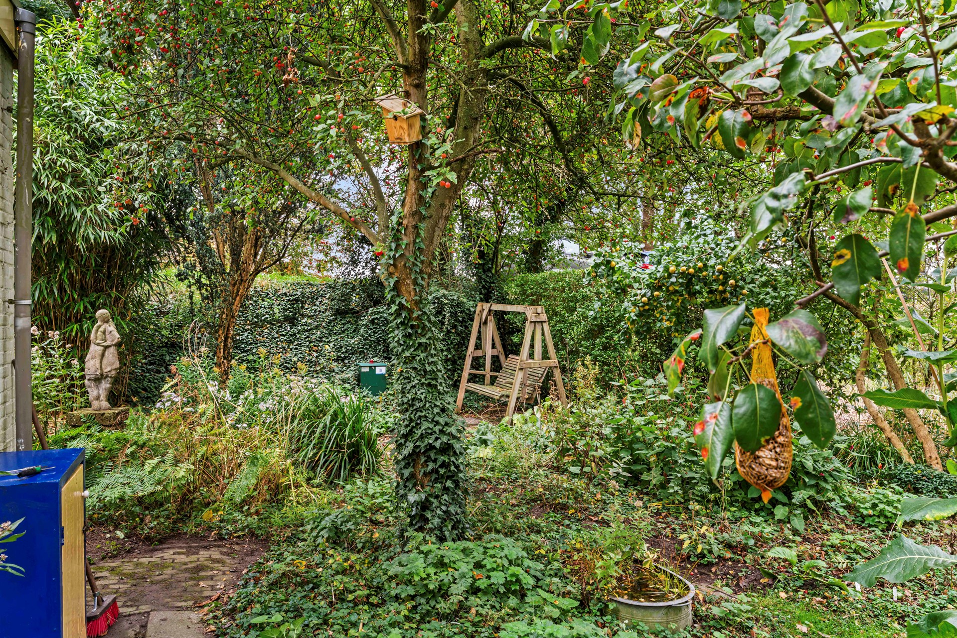 De tuin van Polderdijk 32 voelt als een zorgvuldig ontworpen buitenbeleving, waar ontspanning en natuur elkaar ontmoeten. We beschrijven de achtertuin vanaf de openslaande deuren van de woonkamer. Het hier aanwezige vlonderterras wordt opgesierd door een pergola begroeid met druiven. Vanaf hier geniet je van een prachtig uitzicht op je tuin en de hierachter gelegen weilanden. De tuin is ingericht met een weelderige beplanting, waar het hele jaar door wel wat bloeiends te vinden is. Ook een eigen fruitoogst ligt binnen handbereik; er is een perenboom, appelboom, sierappelboom, twee kweeperenbomen en een druivenstruik. Let ook op de indrukwekkend grote essen met hun prachtige silhouetten. Eyecatcher is de vijverpartij in cascadevorm in de zijtuin, geïnspireerd op de tuinen van het Alhambra in Spanje.