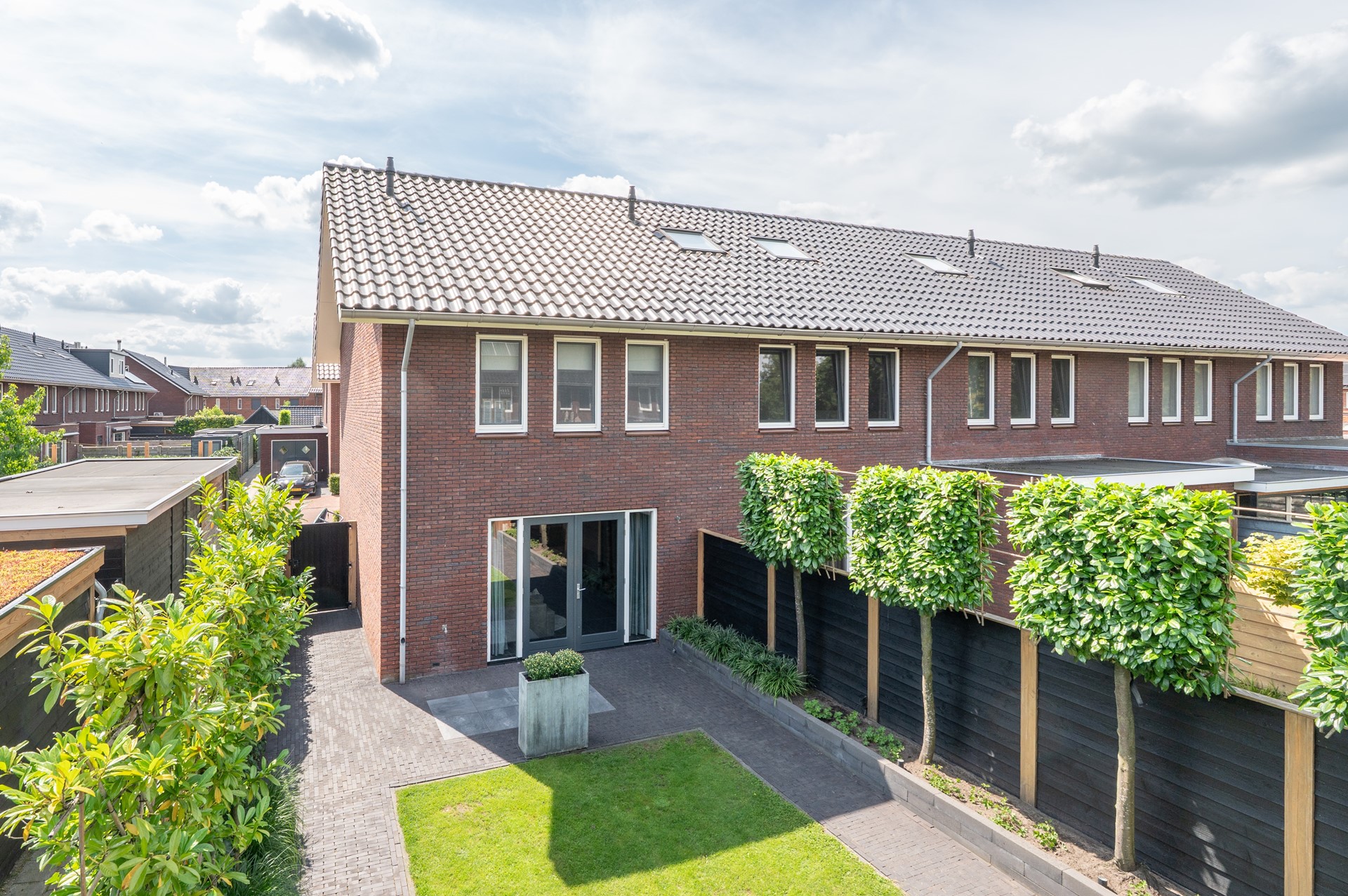 De fraai aangelegde achtertuin is achterom te bereiken. Deze heerlijke tuin achter de woning beschikt o.a. over diverse sierbestrating, groene borders en hagen en een prachtige veranda met glazen schuifpui; een fijne plek om op elk moment van het jaar te kunnen genieten met vrienden en/of familie! Er is een houten berging voor bijvoorbeeld je fietsen en/of (tuin)gereedschap en werkplaats.