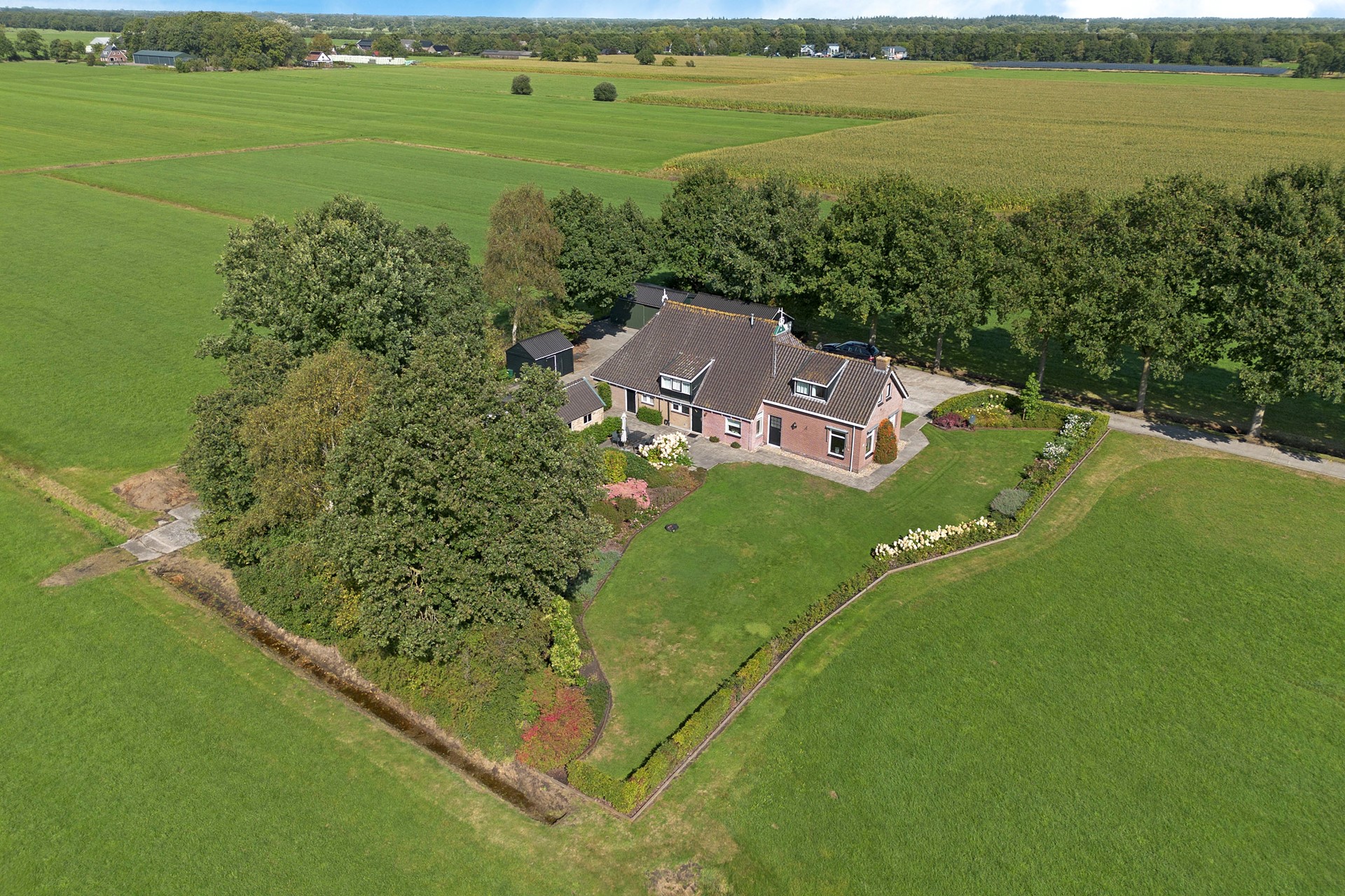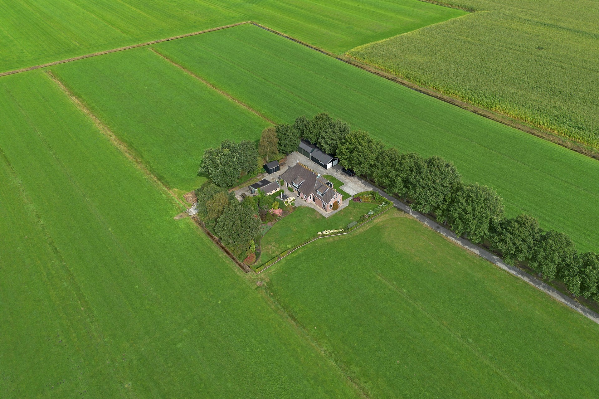 Aan weerzijden van de oprit en achter de woonboerderij liggen een aantal percelen cultuurgrond. Het betreft hier vruchtbare zandgrond.