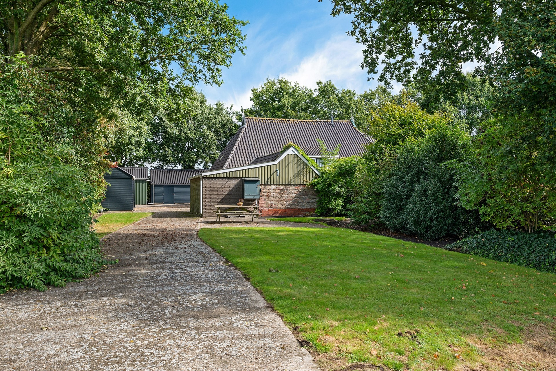 Op het erf staan nog een aantal kleine schuurtjes welke deels halfsteens zijn en deels van hout en damwand. Zowel in het achterhuis als bij 1 schuurtje is nog asbest aanwezig.